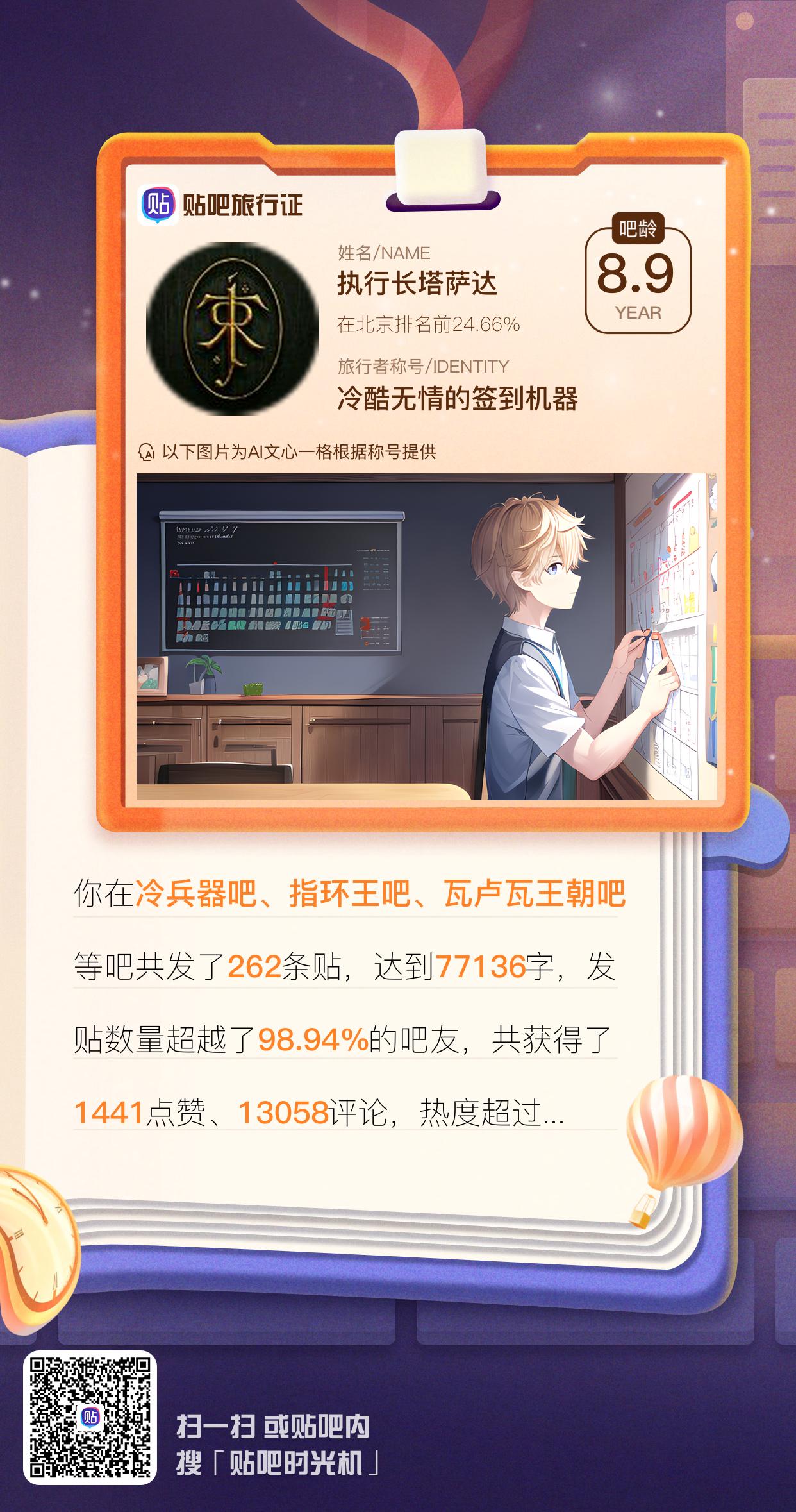 我的吧龄在北京排名24.66 %,贴吧身份是【冷酷无情的签到机器】