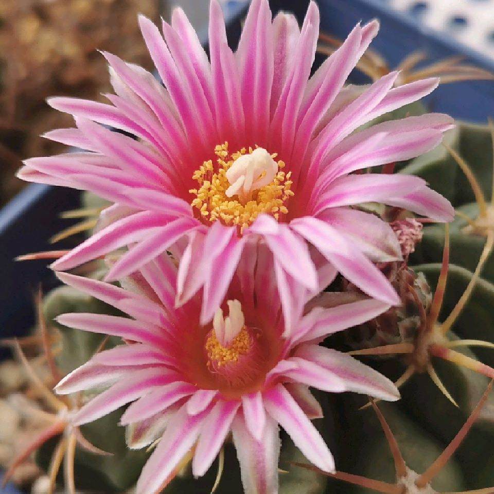 因为花架上放满了,淋不到雨的地方养了乳突属的和番杏科的。