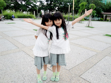 SandyMandy: 放暑假了,我跟姊姊好开心,开心的玩还有开心的吃饭,希望这个暑假能长很高喔