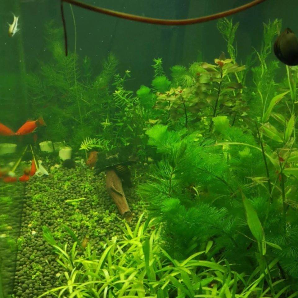 缸里有一些国产的黑金刚和蜜蜂角螺,但都小于1厘米,