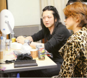 “有朋友六十大寿,祝贺他来的。然后,偶然看到说今天HYDE在开LIVE,所以就想来露个脸。但是没赶上LIVE,对不起啊。”
