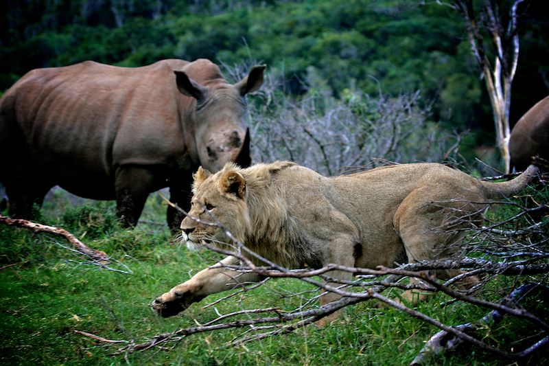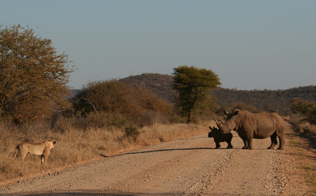 感觉把犀牛的脑袋和脖子一起切下来就和母狮一样大了
