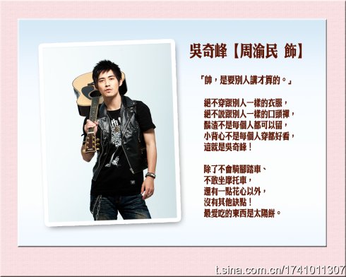 弄了一晚上~~哈哈哈~~~~~除了老爷~~其余都是最最新的样子蛤~~~(老爷最近处的照片大部分都是全身远照~所以就用杂志的这张喽~~~嗬嗬嗬嗬~~~~)