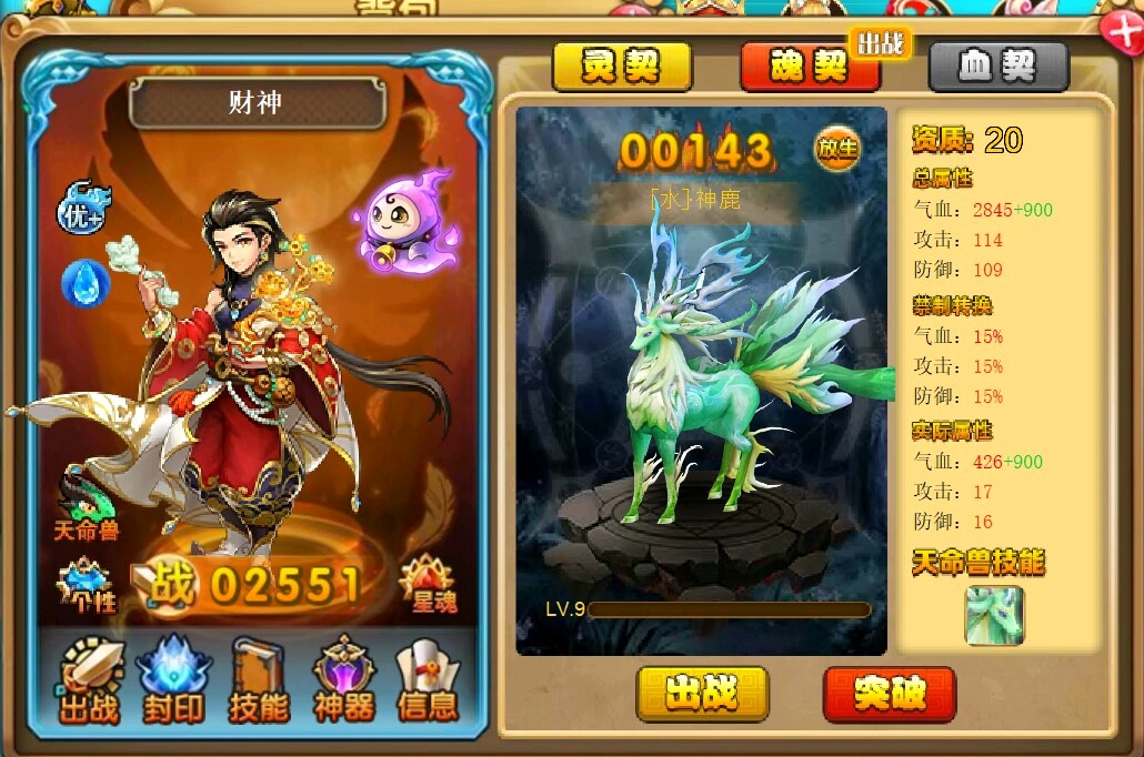 嗯,财神看队友的天命兽配搭,带水或者冰都行。打蛊雕想快的话最好还是带上如意。普通组队副本暴怒加成都能让两个输出位顶四个了(虽然现在副本基本不缺伤害),更不用说还有如意了。所以我才说财神不需要什么练度,高战固然好,白板也能玩。可能他要求比较高吧。