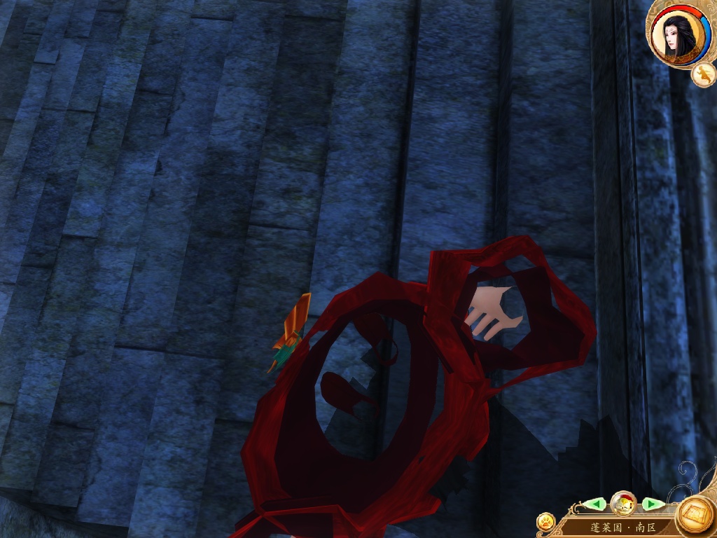 在最后蓬莱那有个推石块游戏,为了把石块整体看清我调整了视角,从上向下看,刚刚推了一个箱子,御姐就变成了这样……!!