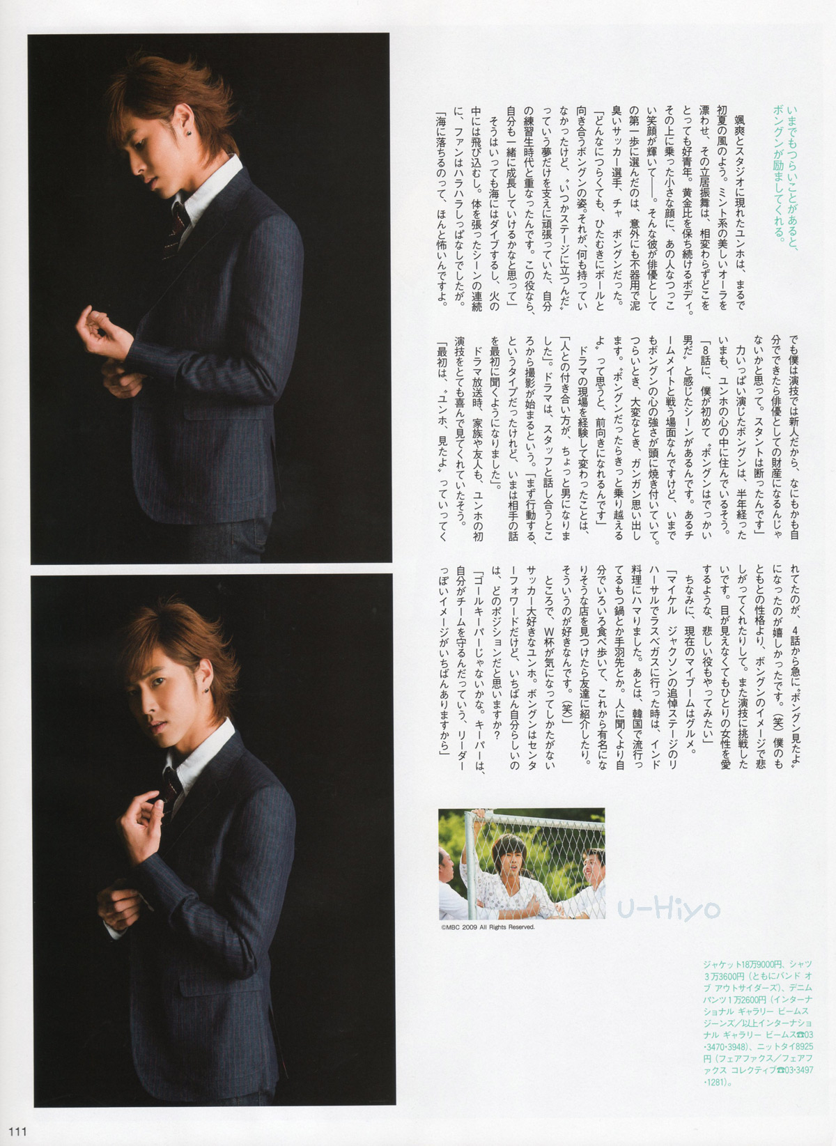 英姿飒爽地出现在摄影棚的允浩如初夏的风。散发着薄荷般的清凉气息,一举一动无论如何挑剔,仍然是个靠谱的年轻人。与长久保持着黄金比例的身材交相辉映的是,那张小脸上平易近人的笑容。就是这样的允浩作为演员迈出的第一步,意外地选择了车奉君这个笨手笨脚、土里土气的足球选手。“不管再艰难,奉君总是一心一意地在足球上努力着。而我在还是练习生的时候,虽然一无所有,但是坚信总有一天能够站上舞台,抱着这样的梦想一直努力着。我想我们在这点上是相同的。这个角色的话,我想自己也能跟着一起成长吧。”