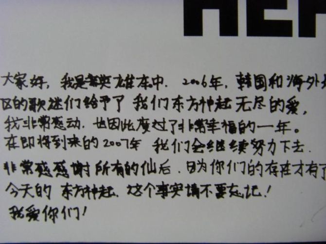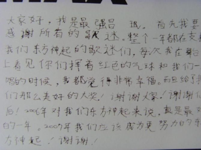我的意思是……我觉得5个人里面有天的韩文字写的最好看~!但是汉字最………………亲理解错了~~我承认我表达能力差……