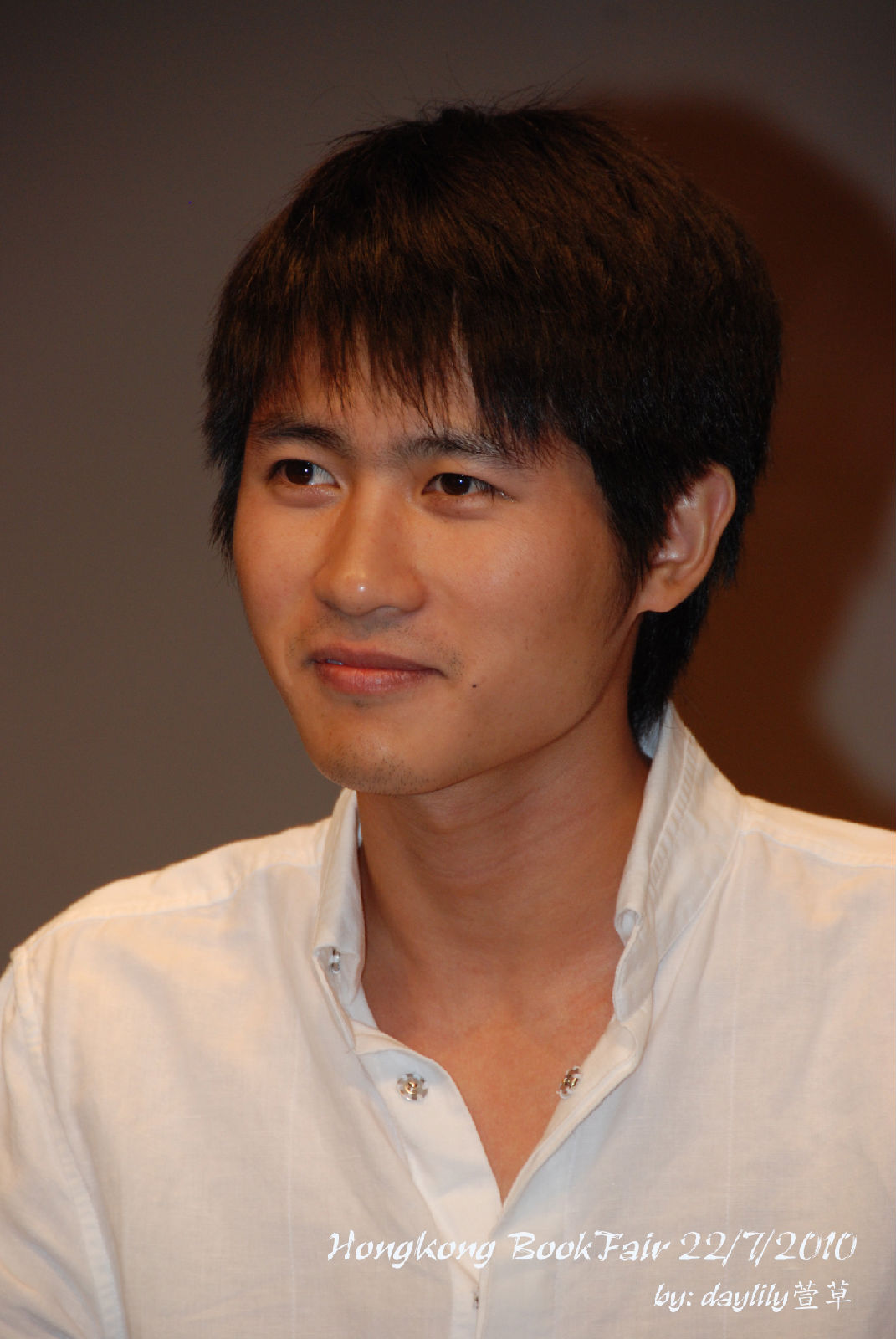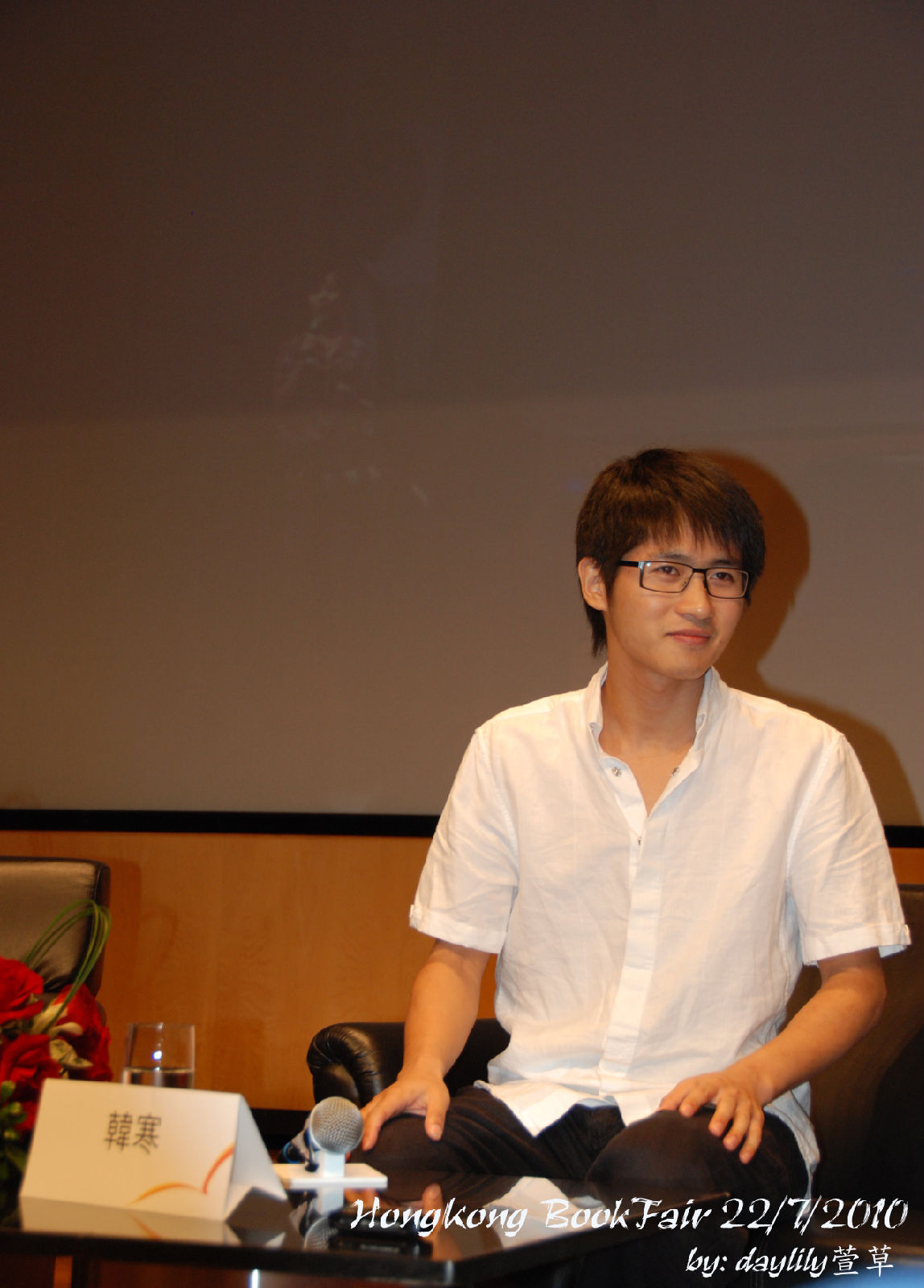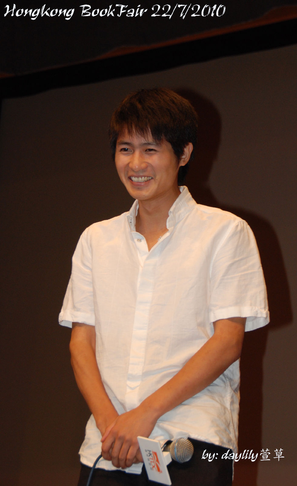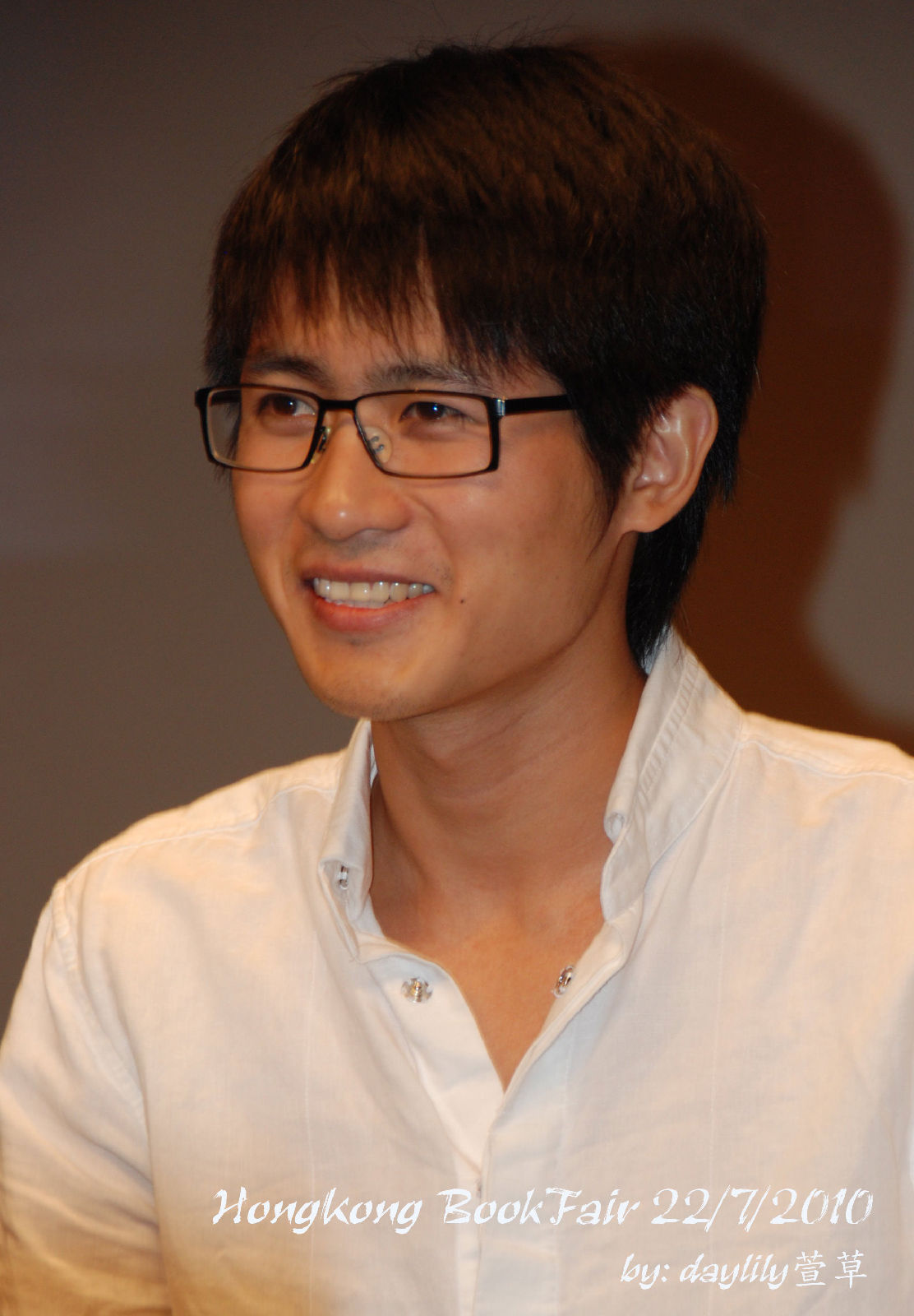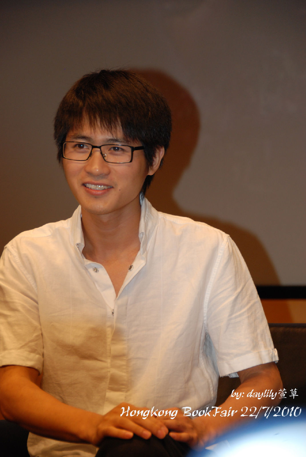 把眼鏡摘下來讓媒體拍照,笑得好靦腆。 ^^