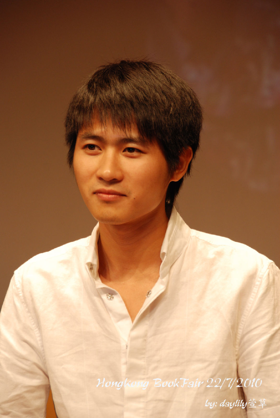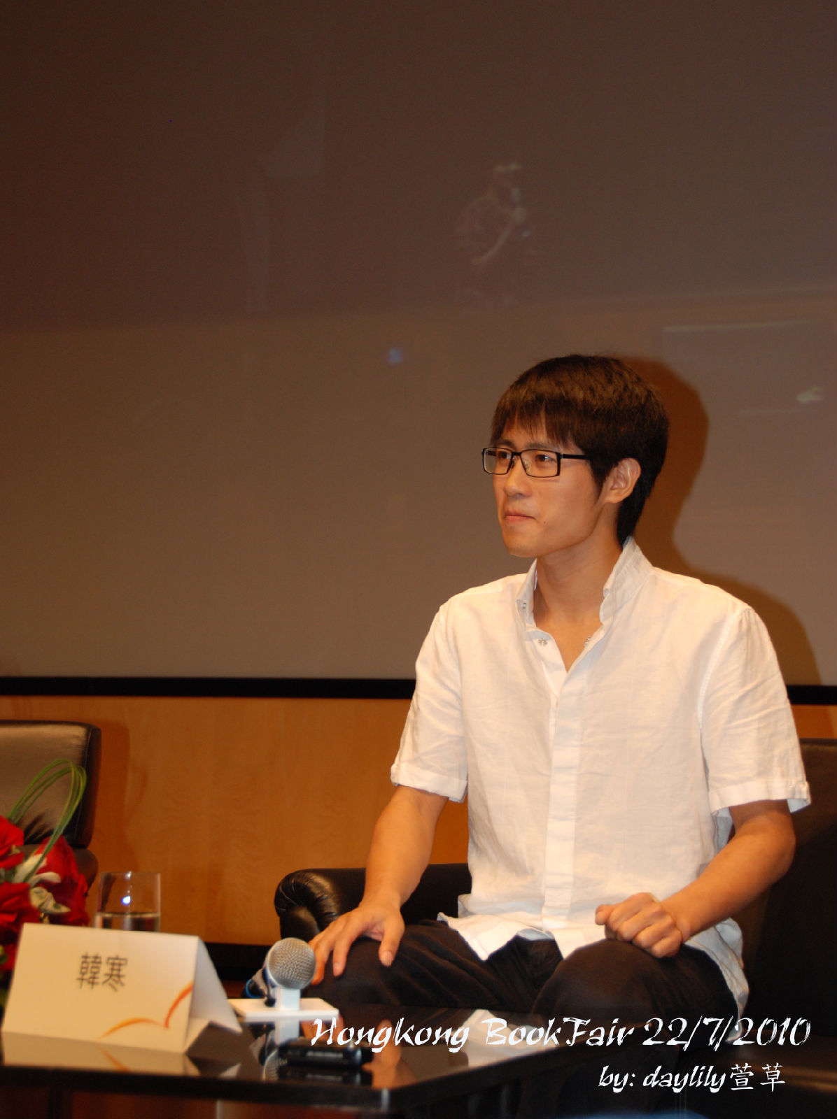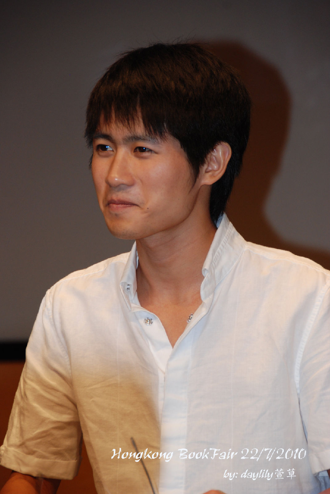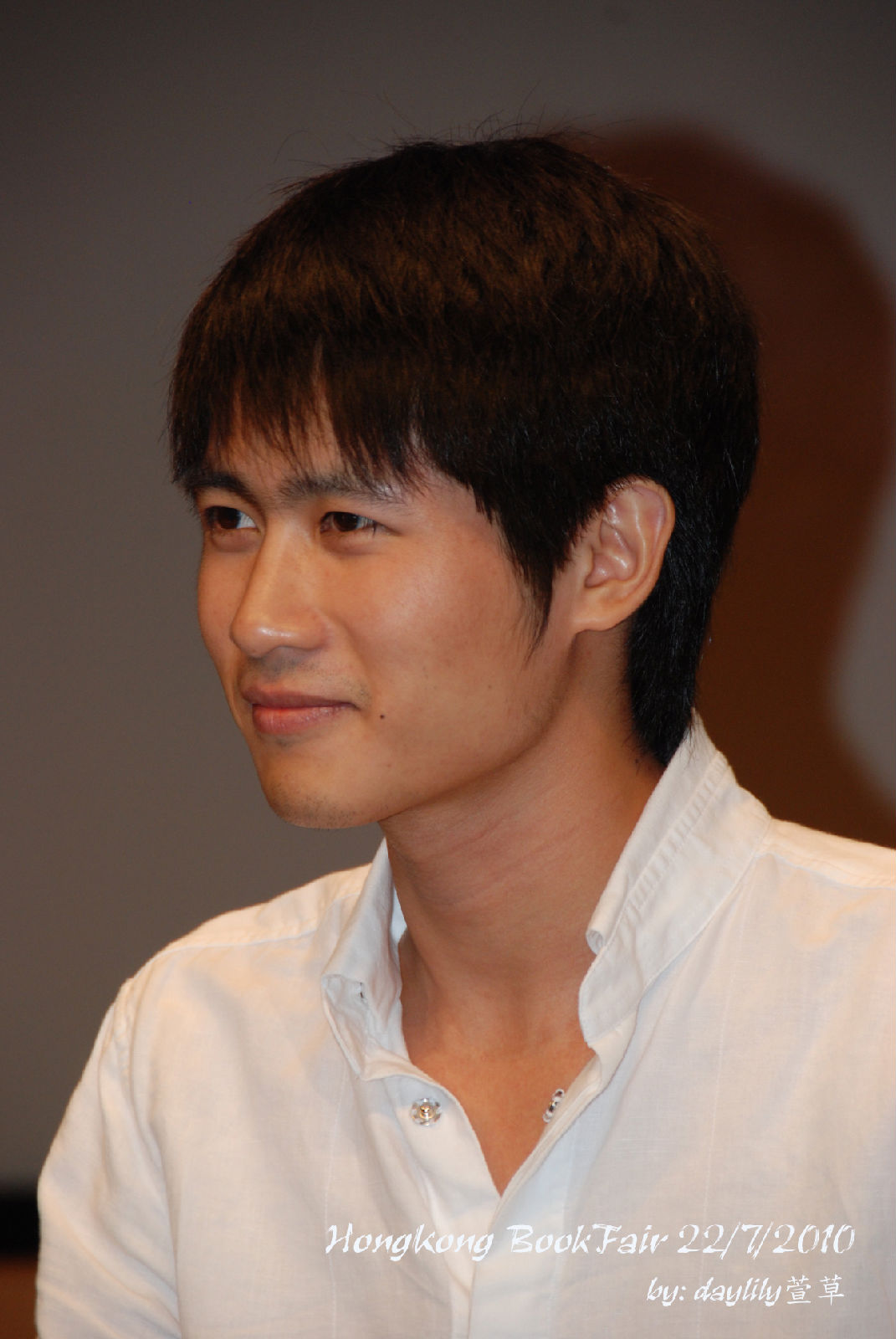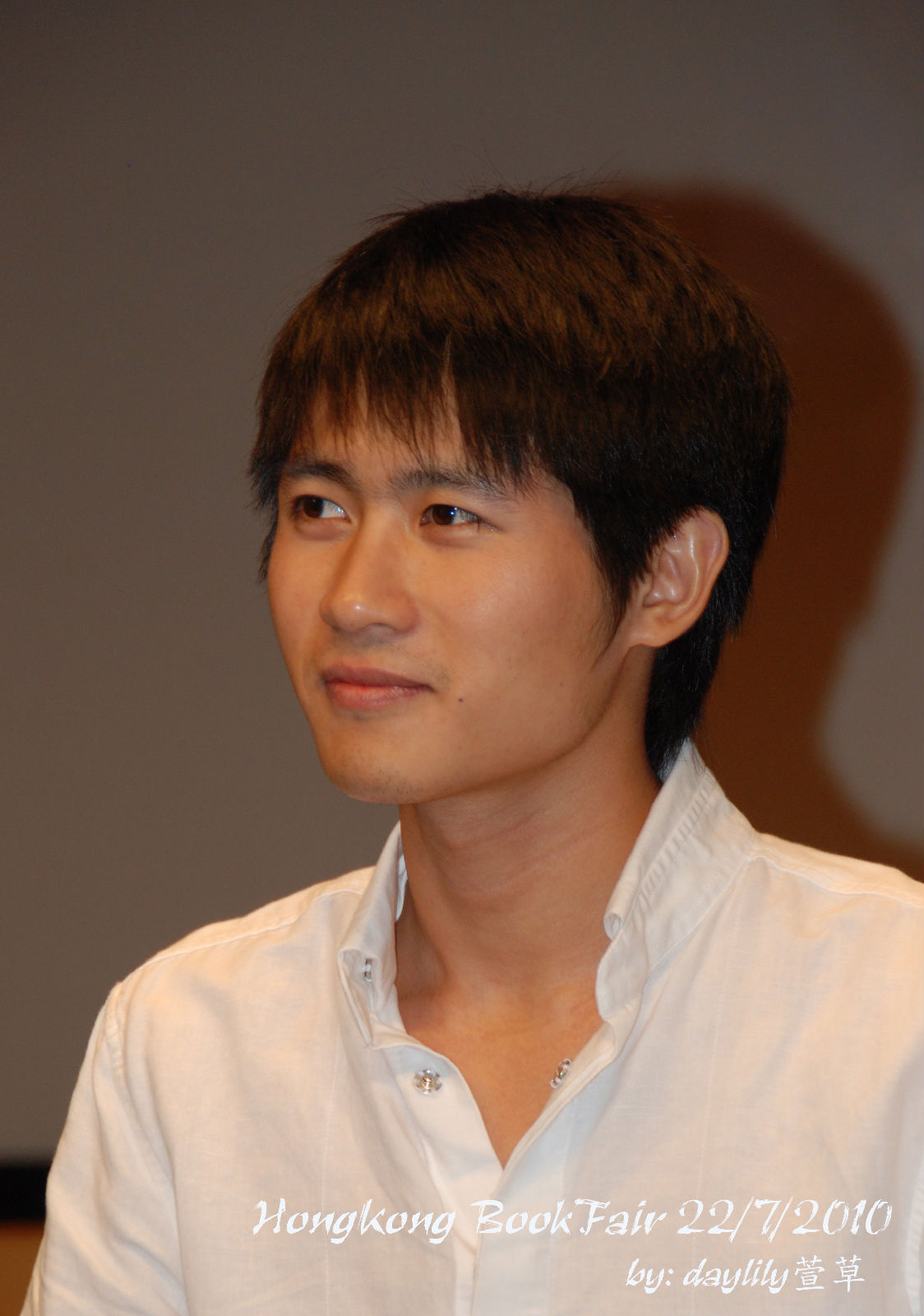 把眼鏡摘下來讓媒體拍照,笑得好靦腆。 ^^
