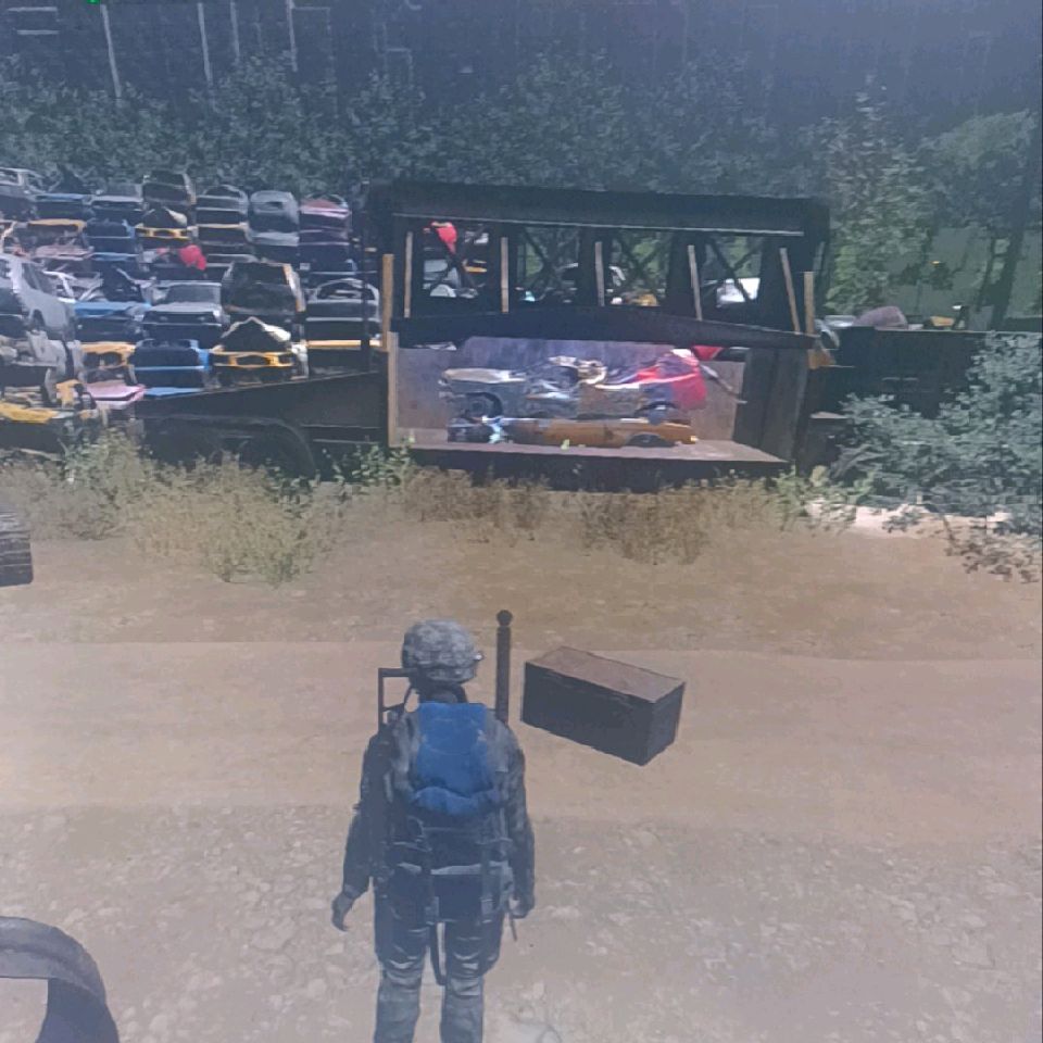 嗯,物资满了,四处丢东西在废弃的车上。