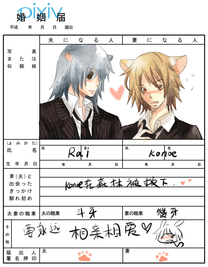 【领结婚证咯~~】KONOE和RAI的LOVELOVE结婚证~~