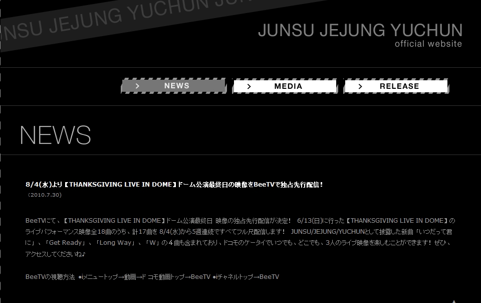 JUNSU/JEJUNG/YUCHUNとして披露された新曲「いつだって君に」、「Get Ready」、「Long Way」、「W」の4曲も含まれており、3人のパフォーマンスで会場を感動の渦に巻き込んだ映像がケータイで蘇る。