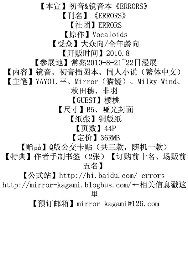 【本宣】初音&镜音本《ERRORS》