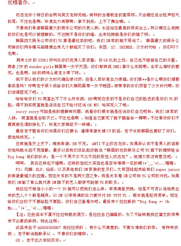 也告诫各位妖精和其他FANS团,注意言行,你们的一举一动,代表着整个你所在的团体