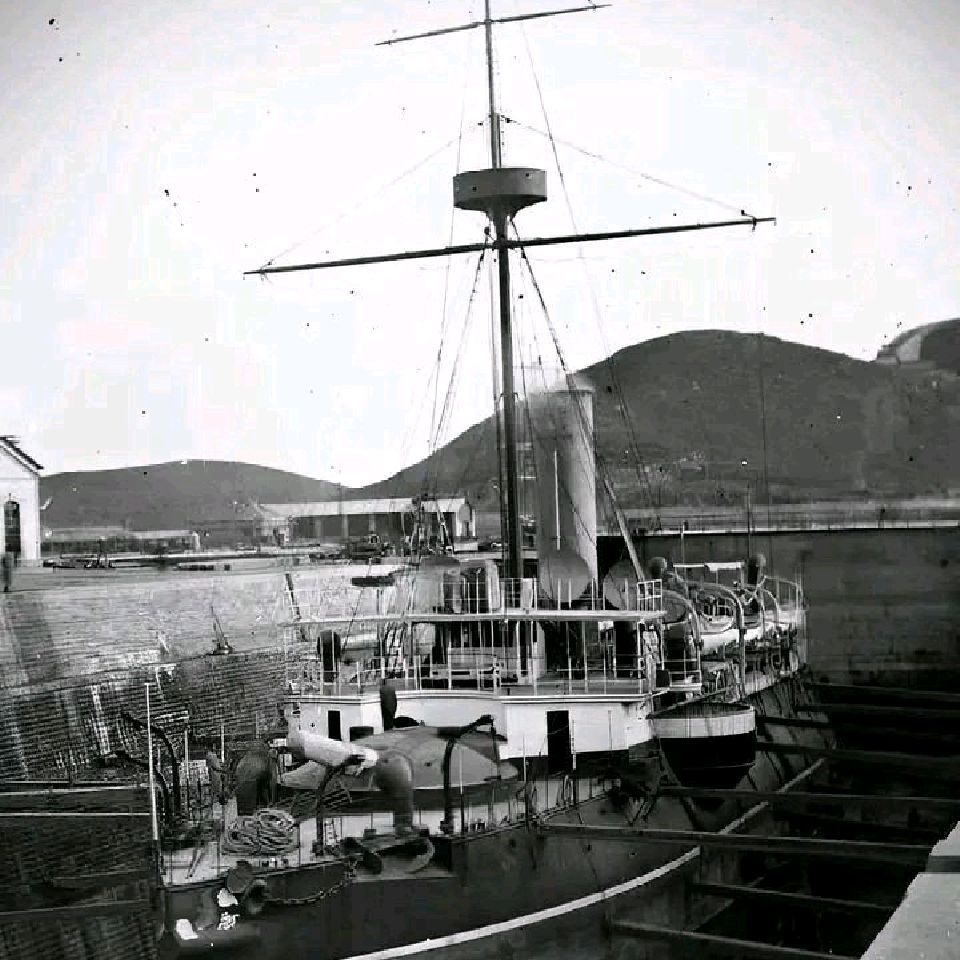 图6,黄泉级共4艘,有尾炮的只有1艘,因为图4所说的原因,4舰全部改为相同的布局,1门前主炮,1门138尾炮。原因很简单,1900年前后的法国岸防装甲舰,布局大多是前后重炮布局,黄泉级装甲炮舰也向其看齐(图7)。