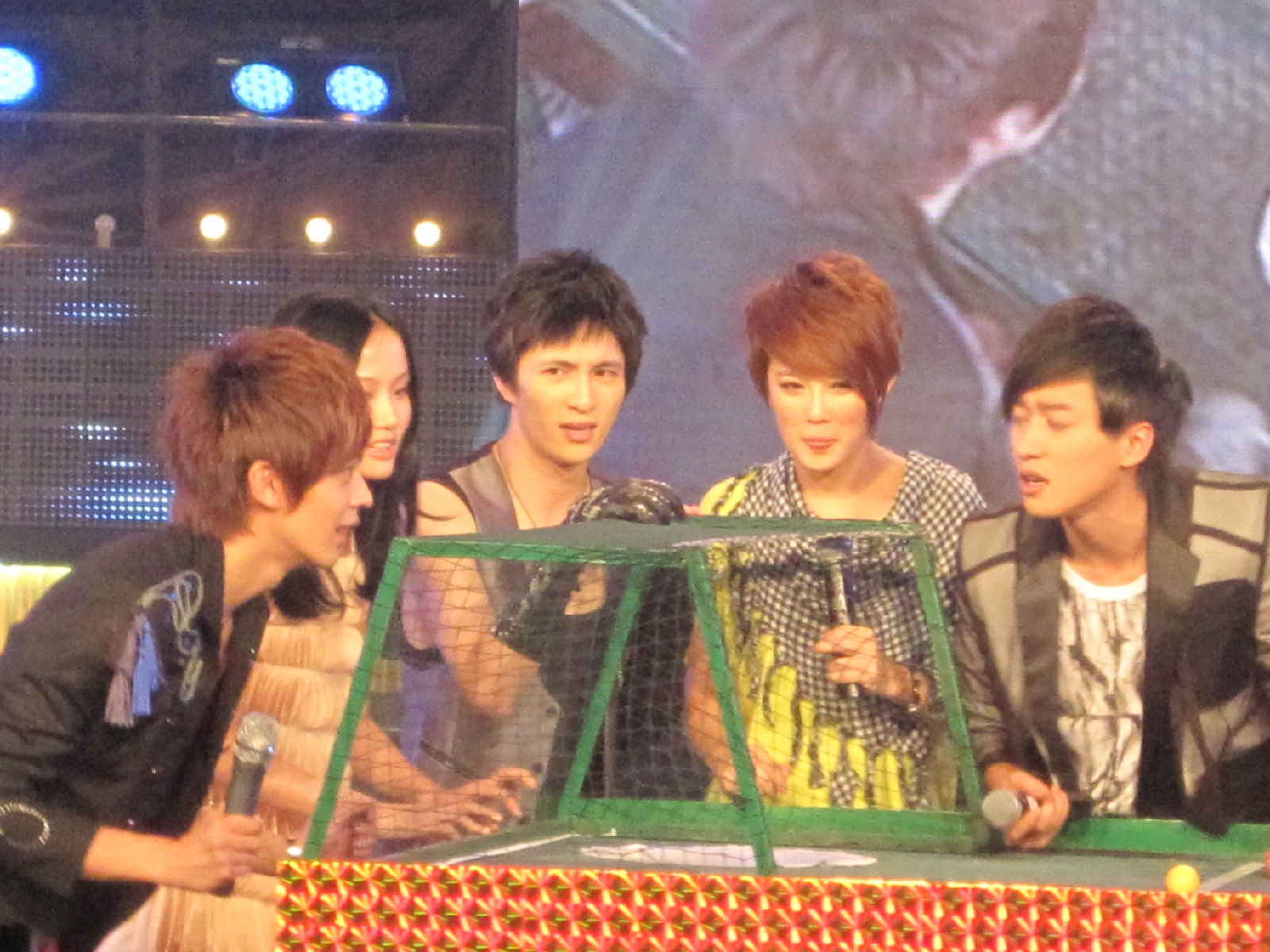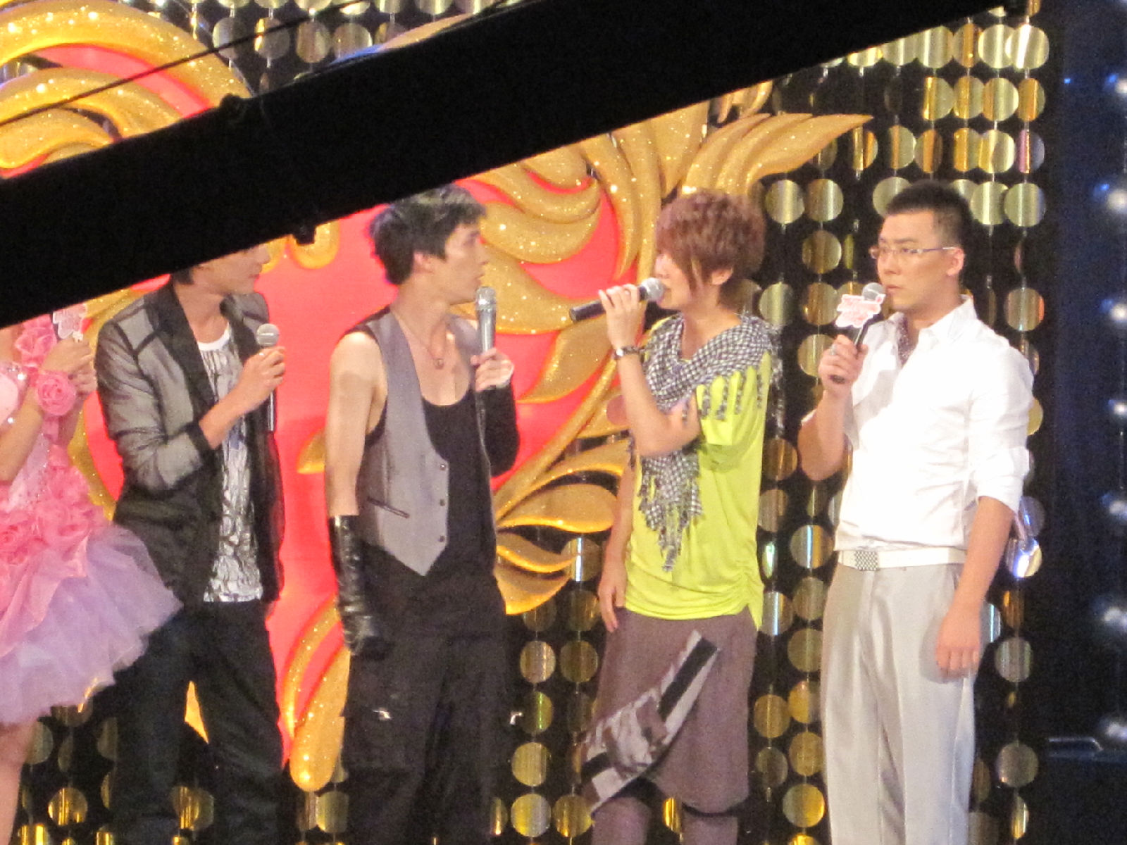 唱完之后。估计是在帮安徽台录什么东西。。每个艺人都在那坐了下。。。。