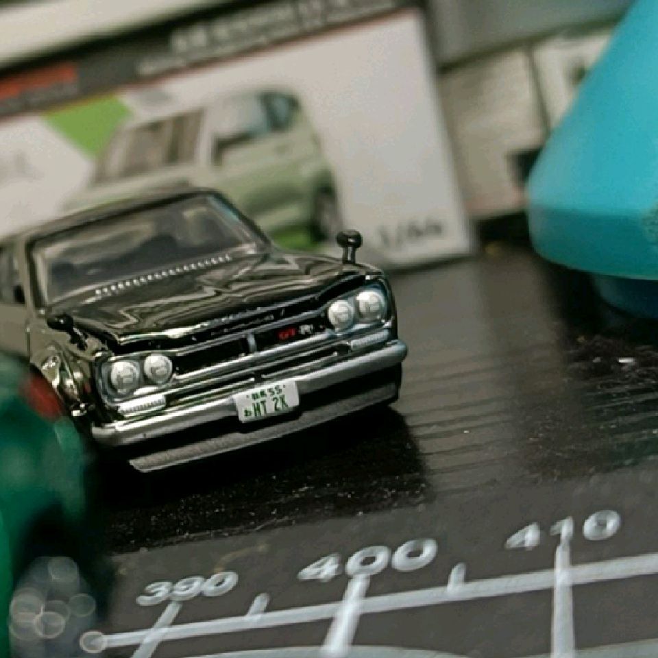 一辆车头大灯正车标歪,车尾车标正但偏下,尾灯歪但不上不下的,由Sonny Fisher对照着Russell Carr那惊世骇俗的evija的设计语言下诞生的emira设计的,身为众多第三版刷色为金属灰的风火轮emira中的一员,在马来工厂被大妈用板卡和塑料壳封印,也许承载着某些信念(大概没有)随箱子里其他71辆兄弟姐妹小车和其他满载小车的箱子一起漂洋过海,停止长距离移动后被悬挂于一家我每次去都能看见火轮子车友(有时候甚至同时出现不止一个)还有来来往往的小朋友的店里的货架上透过透明的塑料壳眼巴巴看着同伴们被成年人一批一批,被小朋友个把辆买走的车![[滑稽]](/static/emoticons/u6ed1u7a3d.png)