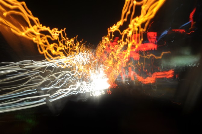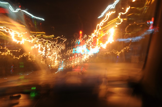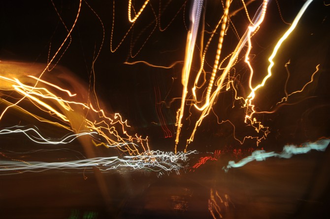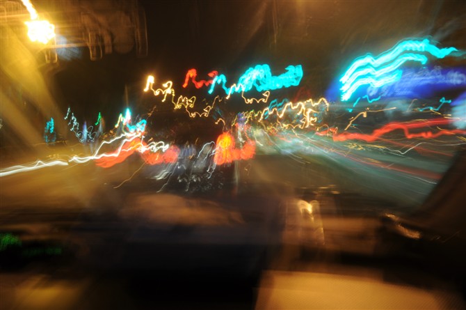 路灯 车灯 。。 车子开的太快了 曝光时间不够