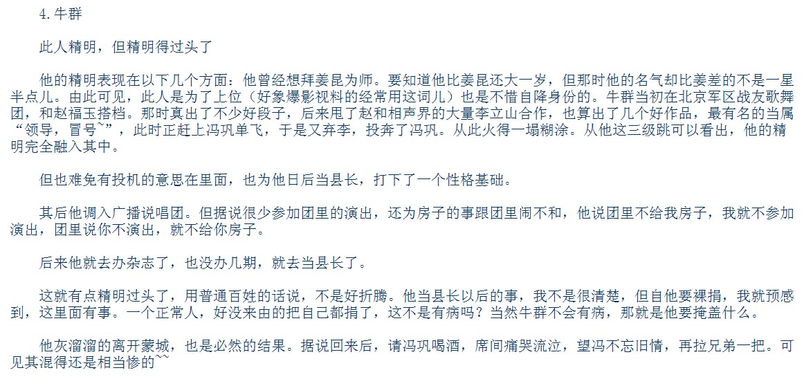 不过为人很热情,对同道也很讲义气,他和牛群早期合作的时候,拢络了一批作者,为他侃相声,这其中甚至包括冯小刚。据说冯的某个段子头天晚上获奖,第二天早上,他的司机就把奖金分别送到每个作者的手中。