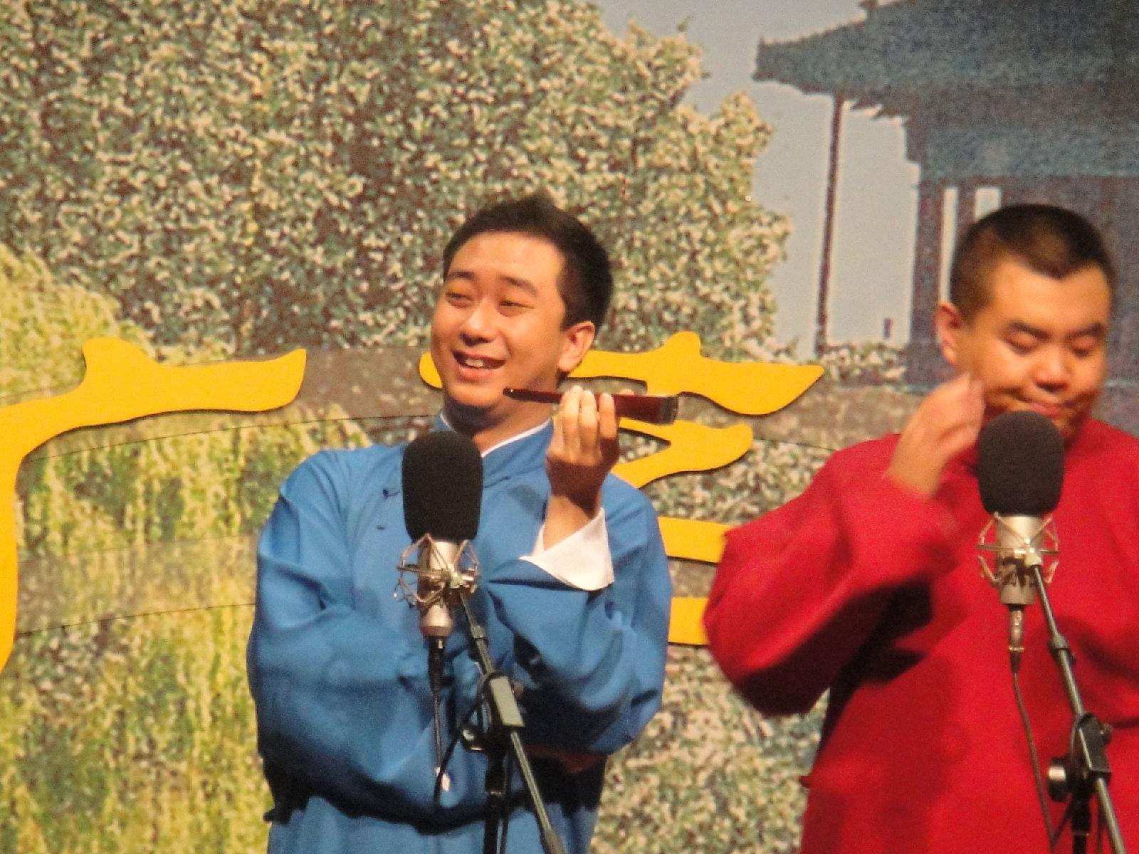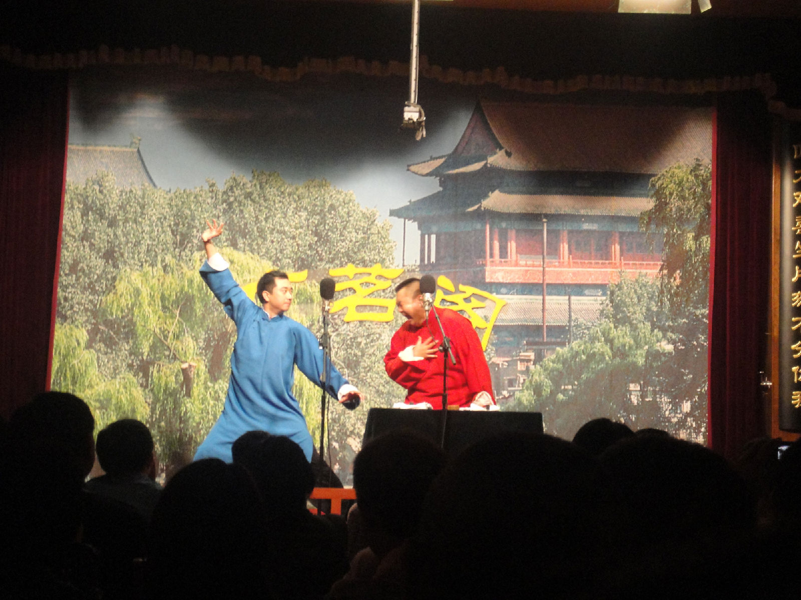 今天演出效果非常好。很多隐喻,很多暗讽,很多三俗。。。整场演出是以张伯鑫大叫:“我找郭德纲去”收场的(知道真相的表拍我)。我的同学说:从第一个段子开始就笑得脸部肌肉疼。我也是。我一直在录音。看到有两个录像的。看看明天有没有视频了。没有的话我传音频。有人说:老郭说张王二人是趁虚而入。谁趁虚而入能到自己每场倒赔1000块钱票钱。对了,郭家菜发票换票有了新规定。。。一切尽在视频中。