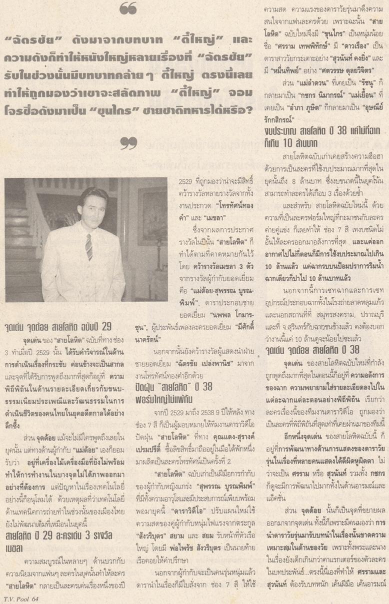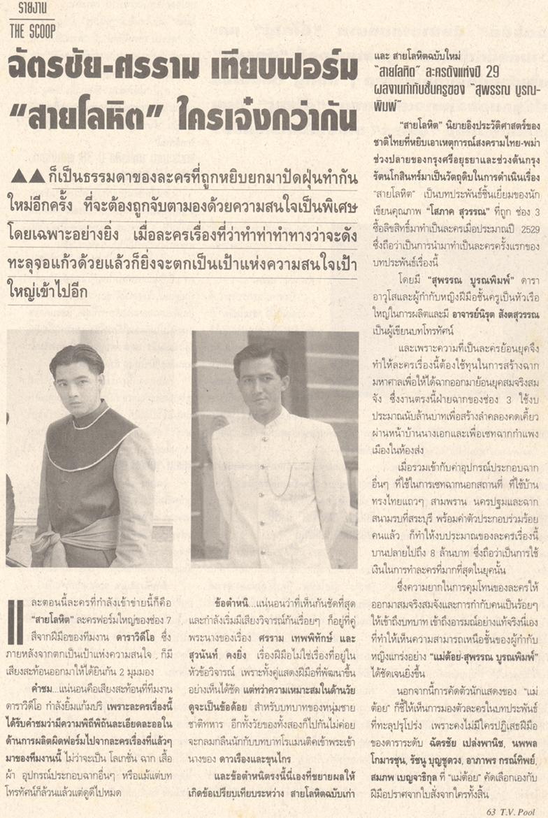 1986年版的《Sai Lo Hid》由Nok Chatchai Plengpanich和Mam Kathaleeya McIntosh主演。