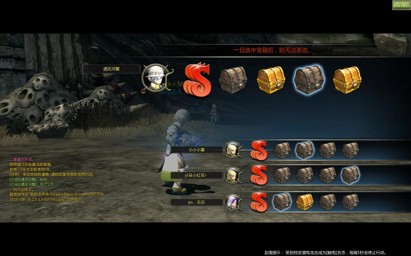 好郁闷哦,自己是4个木头箱子,用了1小时10分钟左右,要是不能给金箱子我还单刷干嘛啊!