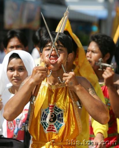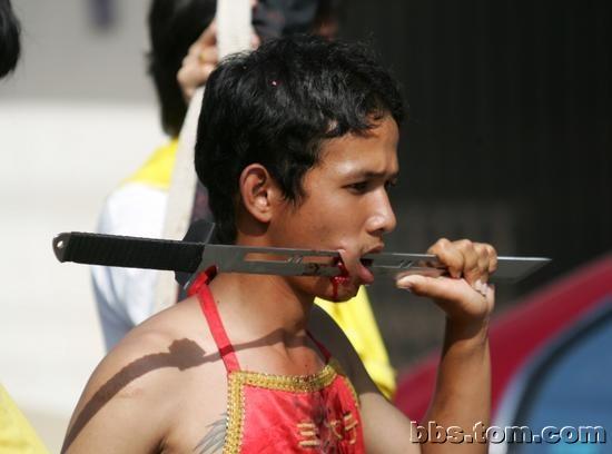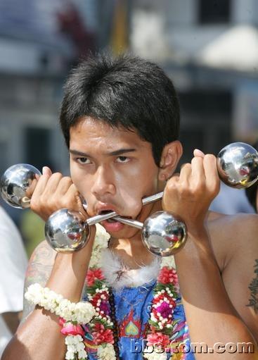东南亚一些国家也流行这些 用自行车穿脸 M16穿脸 什么都拿来穿脸。。。。