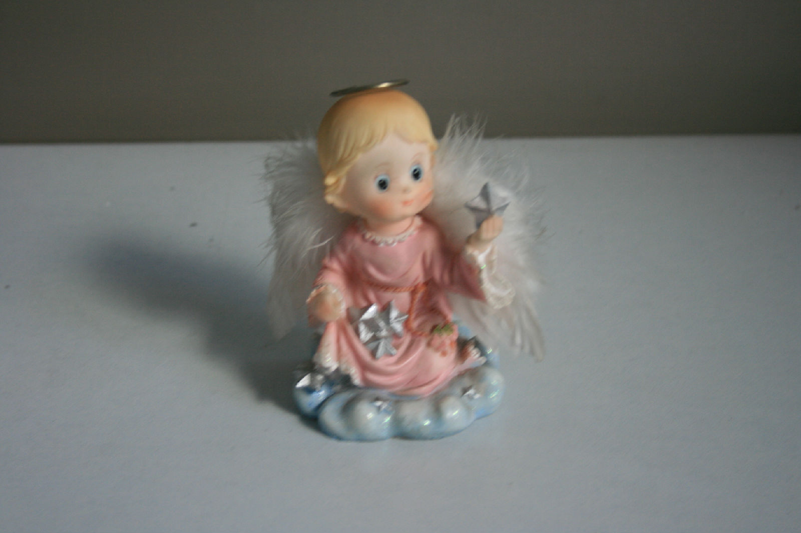 这只天使是同事大姐离开公司的时候送的礼物~~很可爱的一个装饰品,一直跟我的小鱼、吊兰站在桌子的角落。可惜,我的小鱼死掉了,别人家的吊兰越长越多,我的吊兰越长越少,估计也快死掉了,好在小天使不需要喂养,我想他能活得久一点,恩……一定,握拳!