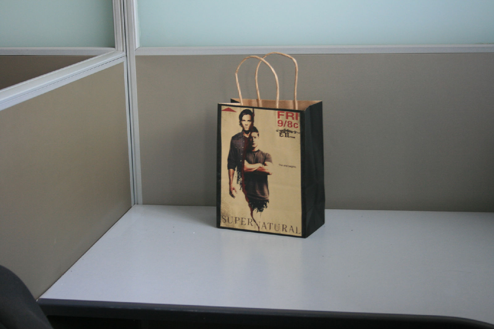 SDCC版SPN仿官方手袋,图案是被粉丝无限PS的那个某图中大J手里举的那张。有不确定谣言说大J举的其实是美人的房卡……噗!~~鼻血,我也拥有美人房卡了?