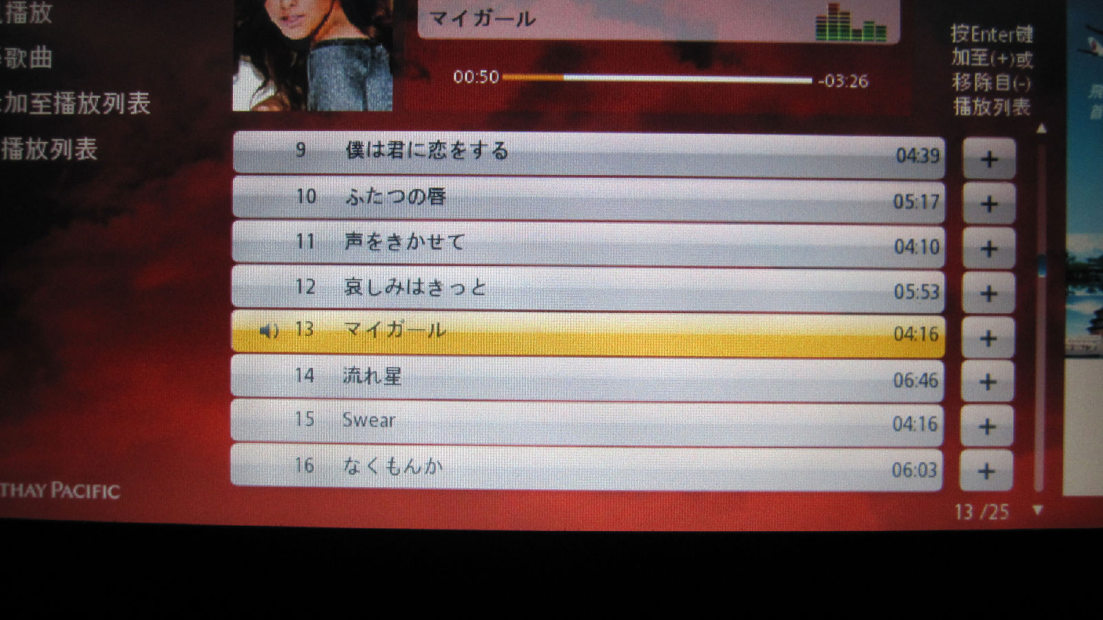 国泰航空上的日音~那是MY GRIL还是最近的单曲呢~国泰好给力