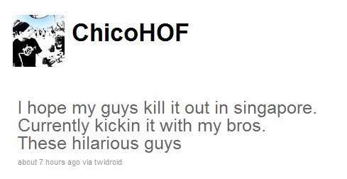 .I hope my guys kill it out in singapore. Currently kickin it with my bros. These hilarious guys I