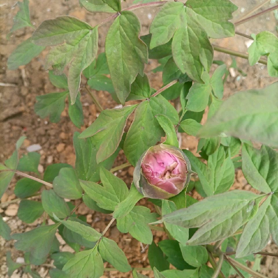 你看后面那个牡丹,一起种的。就是秋天种的。四个只有这一颗这样。同样的种法。我也搞不懂为啥。