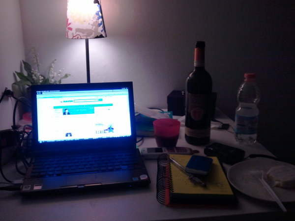 FR:赵奎贤吧。 GaemGyu http://twitpic.com/2tfe2p 그리고 힘든 여정끝에 내일의 계획을 짜며 하는 고작 7.50유로짜리 와인... 이보다 더 즐거울 수 있을까? 还有 劳累辛苦的旅行之后计划好明天的行程 来一杯只要7.5欧元的红酒....还有比这高兴的事儿了吗?