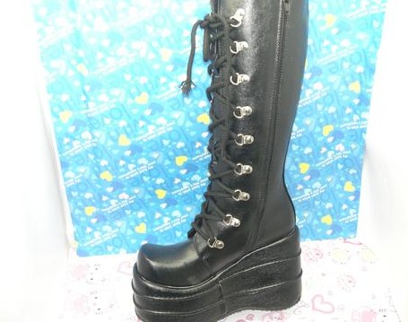 黑色绑带松糕靴