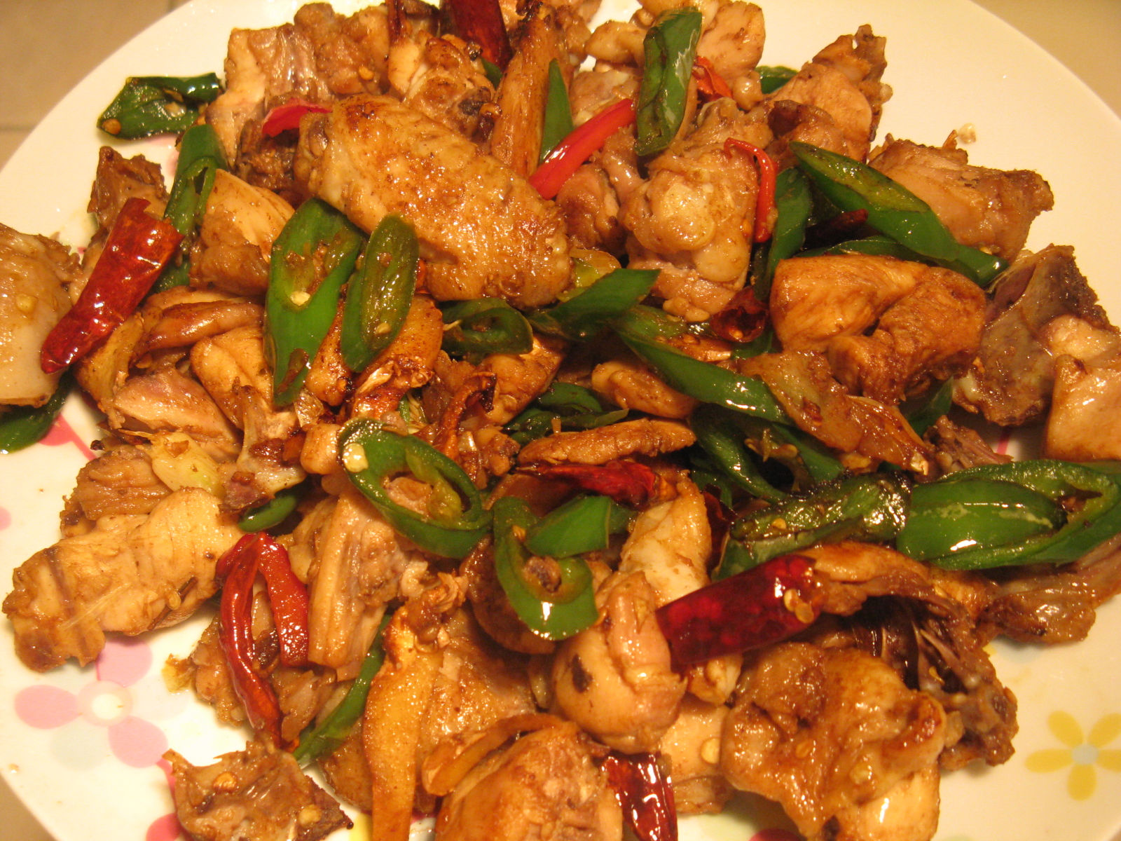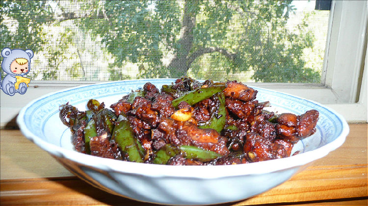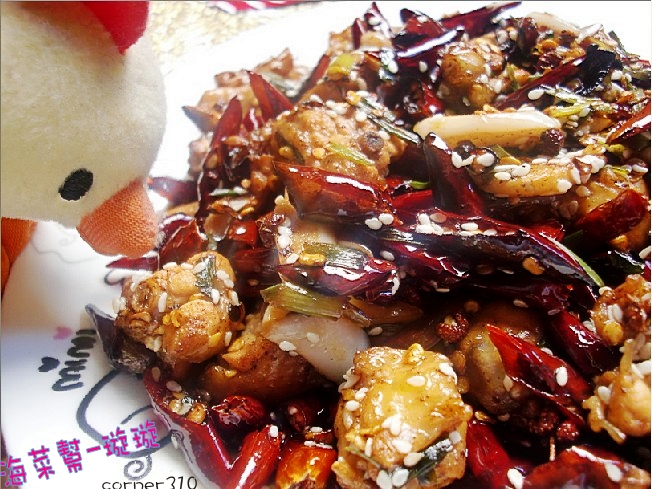 4、炒到香味出来,再把鸡块倒进去一起炒。。(抽风扇坏了,呛死我了)