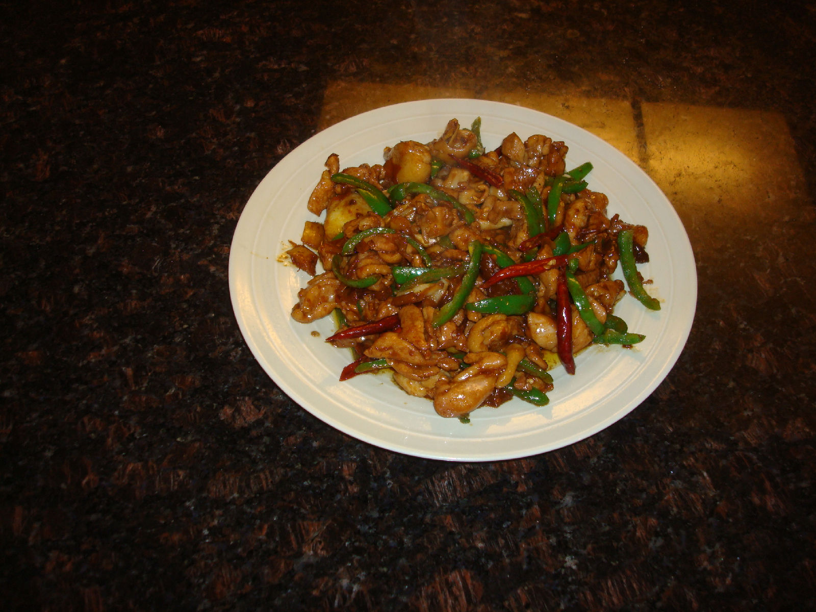 2、下锅炒鸡块,炒到熟,并中间加入姜一起炒(家里面没蒜了。。)