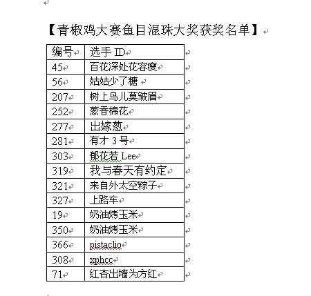 【青椒鸡大赛鱼目混珠奖提名名单】