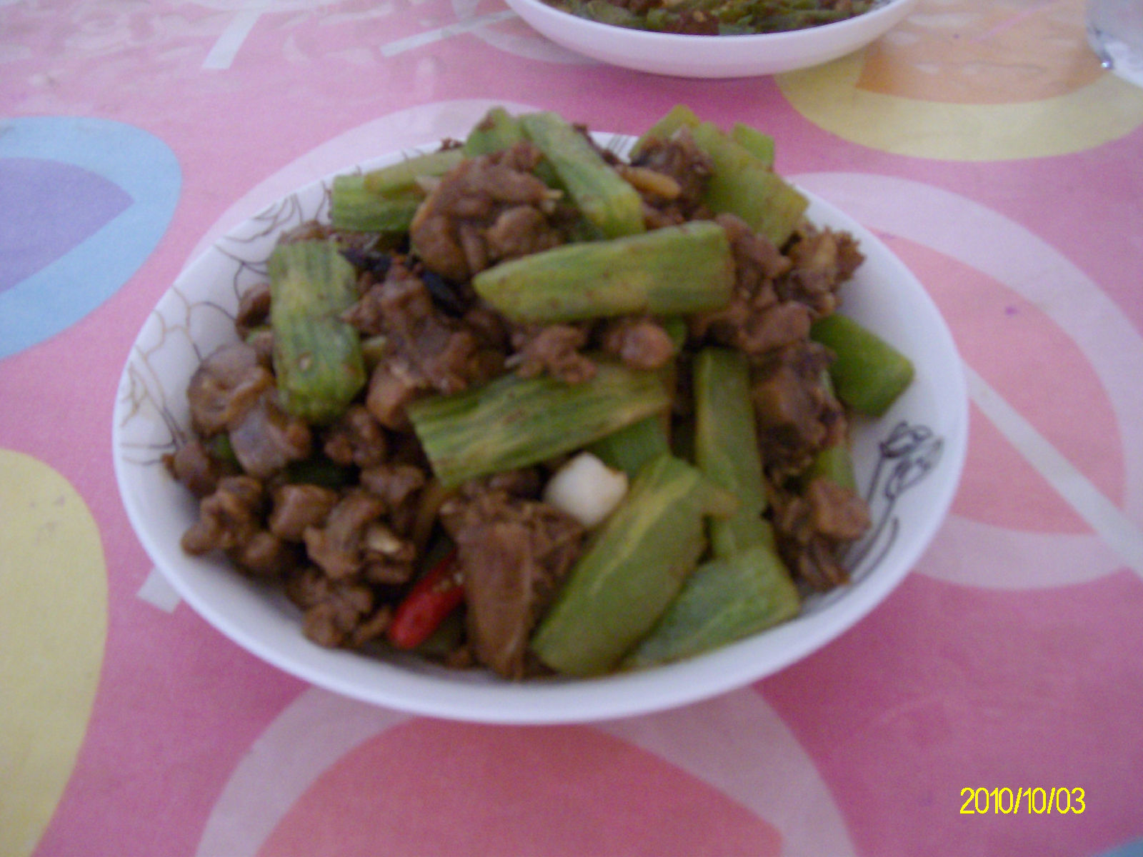 此图拍于2009年10月18日,并有五名同行玉米作证,青椒鸡一定不是李总的发明,偶已经早一年吃过了。