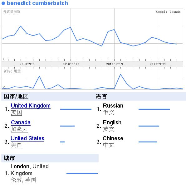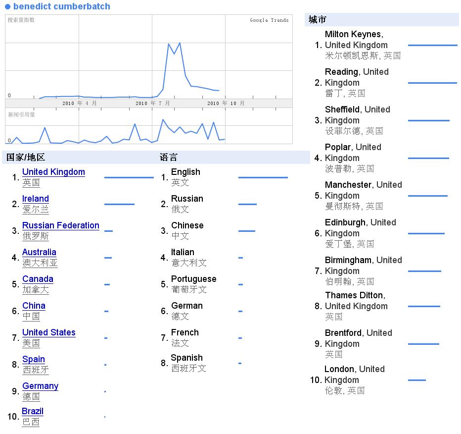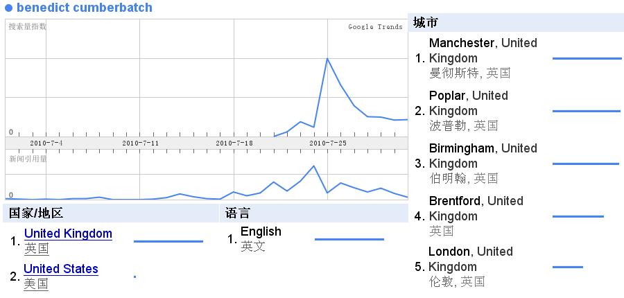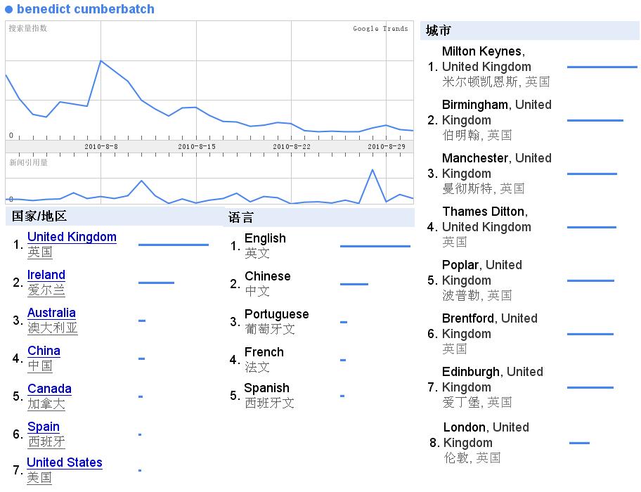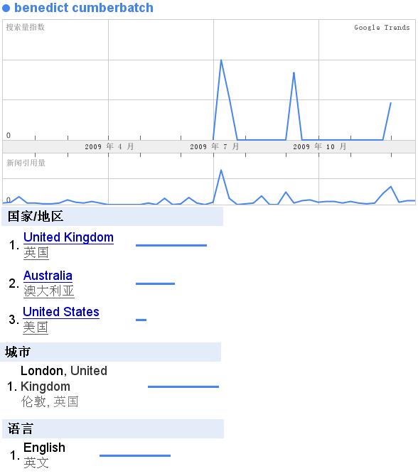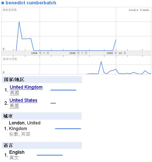 7月份有一个新闻,然后搜的量也上升了,居然还出现了澳粉,估计应该是某个剧在澳洲播出吧~~~而搜他的语言,还是只有E文~~~小众啊~~~~