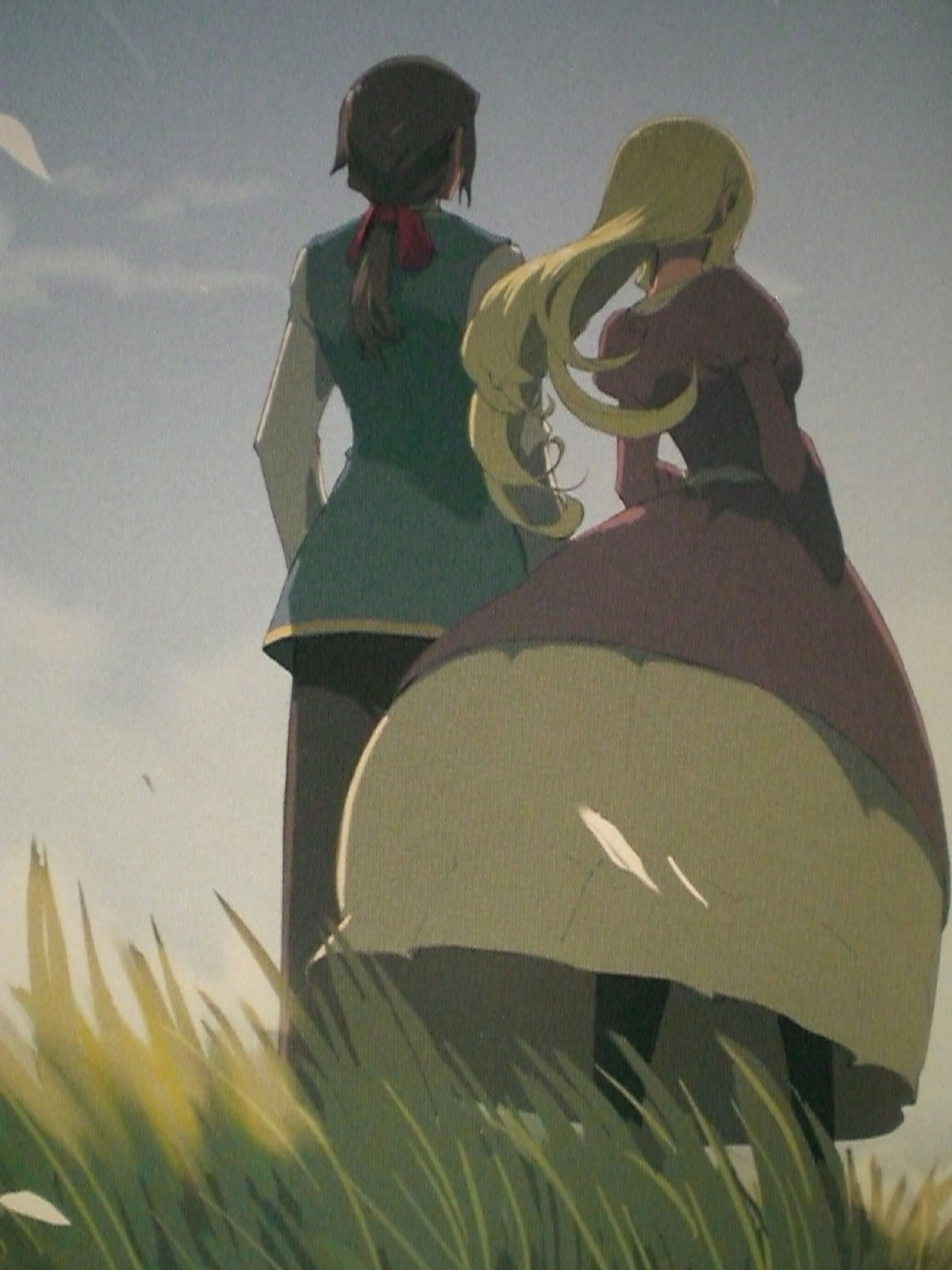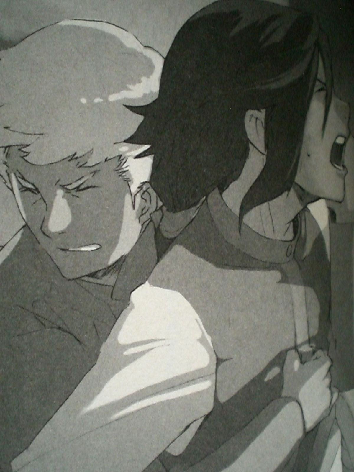 我觉得那两张彩图并不是想着对方跑去,而是一个人随光明而去,另一人被现实推进永远的黑暗(很绝望的视角w