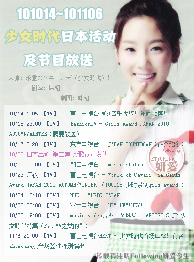 101014~101106少女时代日本活动及节目放送