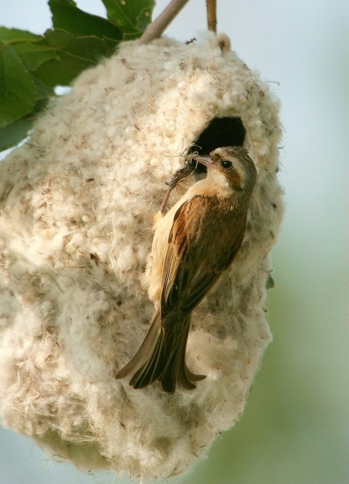 攀雀一般在6---8月份繁殖后代。首先是雄性攀雀选择好树枝筑巢,它是一边筑巢一边鸣叫雌性攀雀。雄性攀雀先把巢穴筑成提篮状,等雌性攀雀飞来时双双在把巢穴的另一端封口。如果雄性攀雀筑巢近一个月还招不来雌性攀雀,雄性攀雀就会弃巢而去。弃巢其间雄性攀雀还要把巢穴破坏部分构造,它不想留给另一支雄性攀雀。时常见到二只雄性攀雀为争巢穴而战斗。雄性攀雀等到雌性攀雀到来后便双双一边筑巢一边交配。巢穴筑成后雌攀雀一般产蛋三枚,二十多天后幼雏就会破壳而出。哺肓幼雏的任务主要是雌攀雀,雄性攀雀哺育幼雏的时间较少