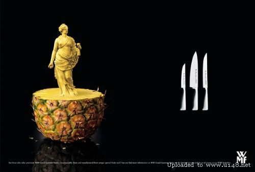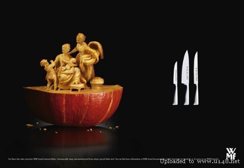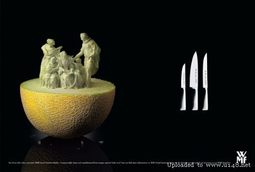 其实这是德国最著名的厨房餐桌用品品牌WMF的广告,它以高品质和种类齐全著称,为消费者提供从准备,到烹饪,到上菜,到进餐,到饮酒和咖啡,以及最后的储藏,一系列高质量和功能完美结合的产品,满足人们把餐饮当作一种享受的需求。