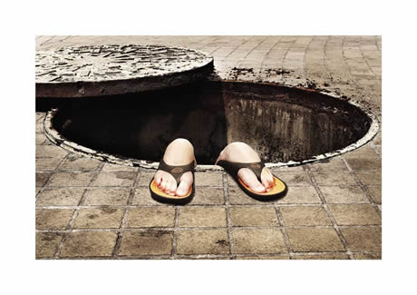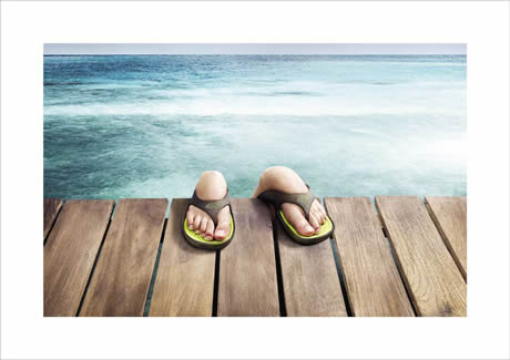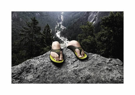 Scholl 拖鞋的抓地力在广告里表现得很淋漓,不过这脚的模样就太让人触目了。。