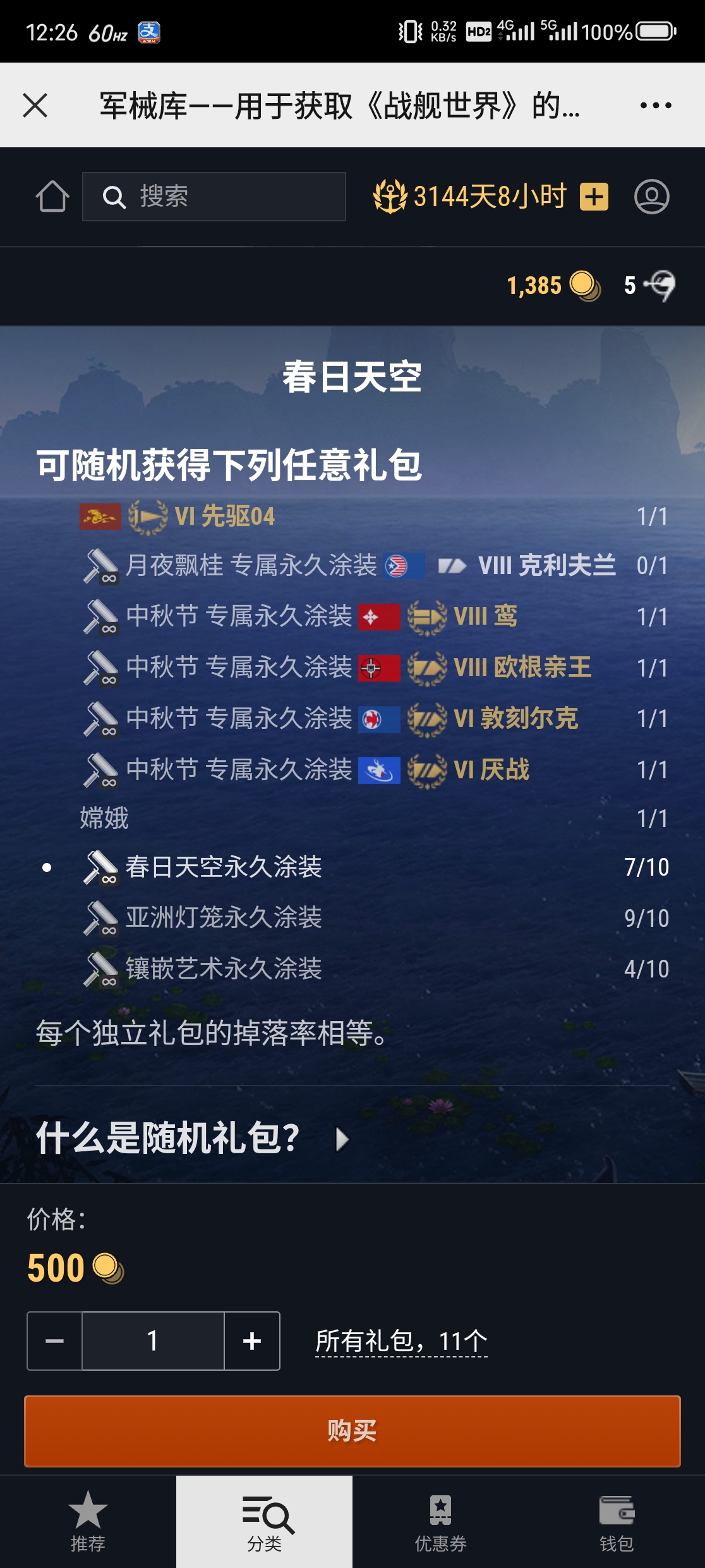 我的永久白银皮都给了十级船,超战不舍得给,开不起啊~