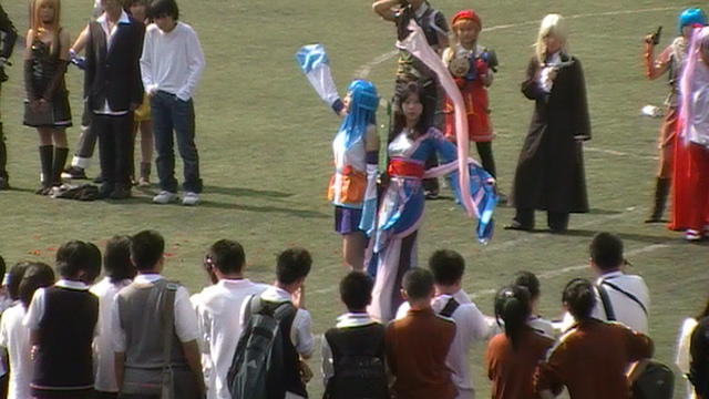 这是如此亮丽的白衣红跨,这是如此亮丽的巫女服,这是如此亮丽的红白相间的圣衣,我们动漫社就这样cos毁了。