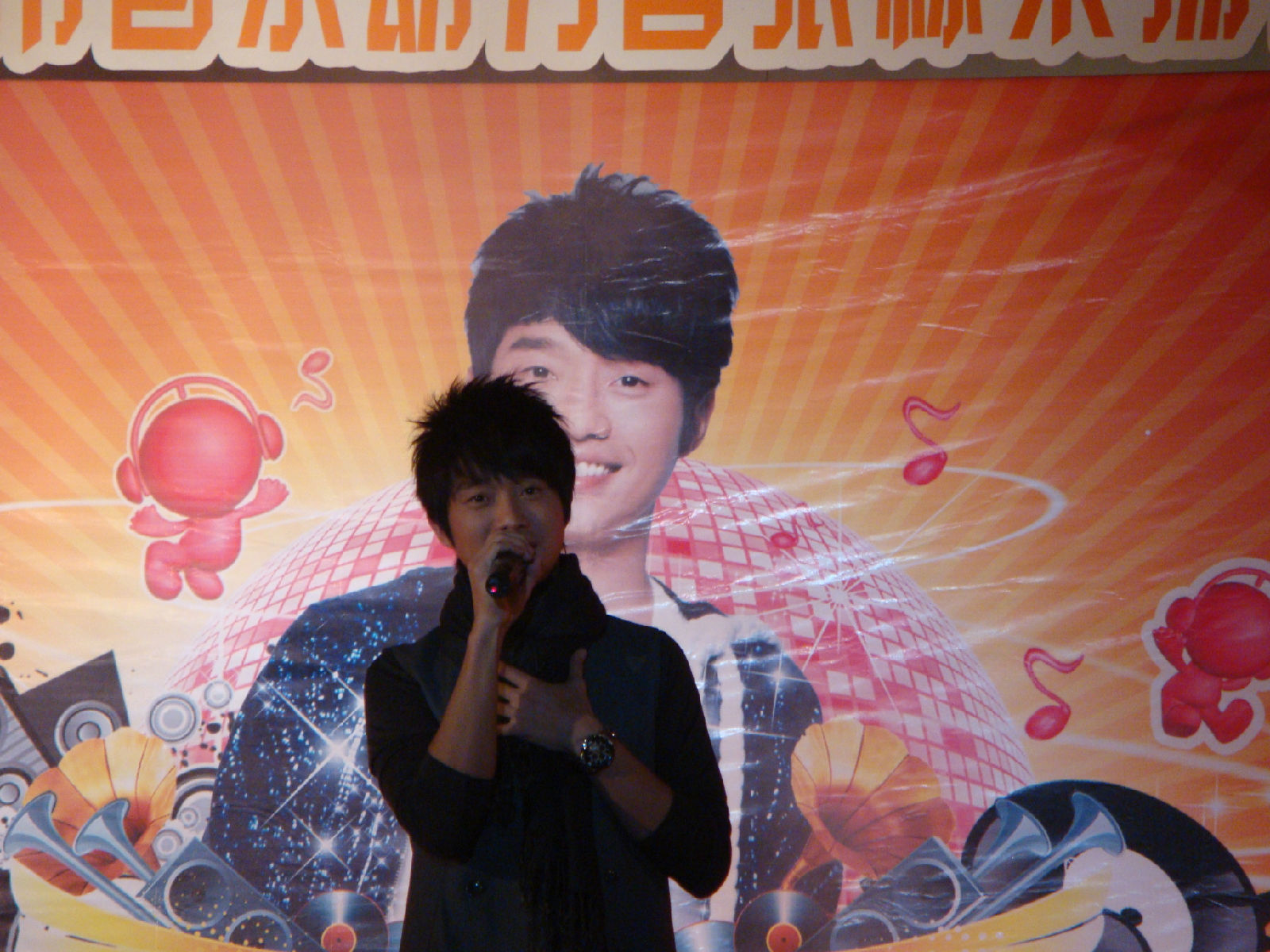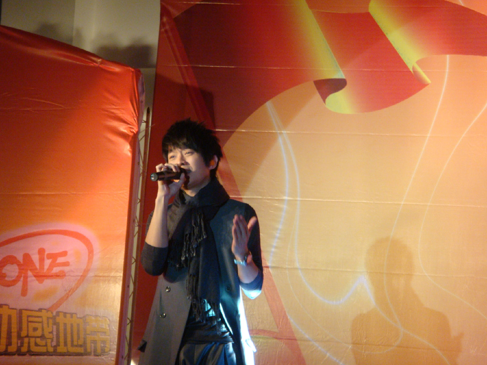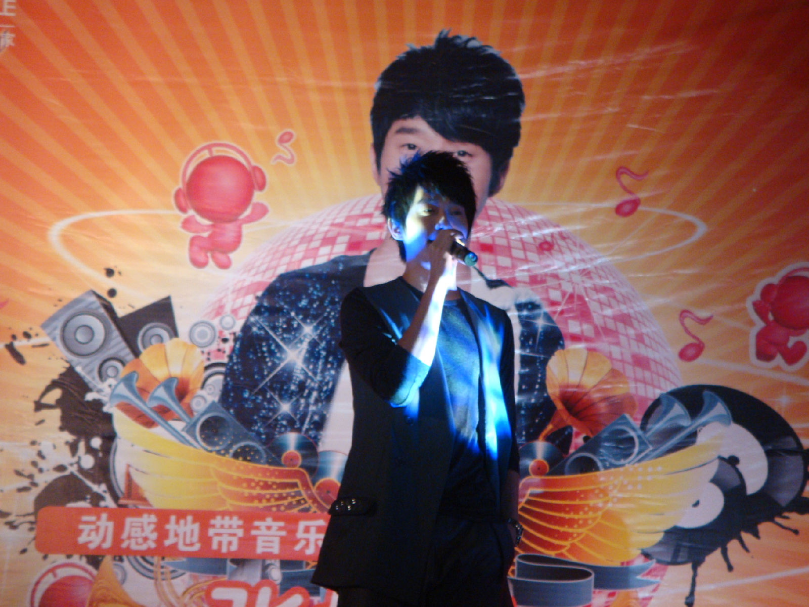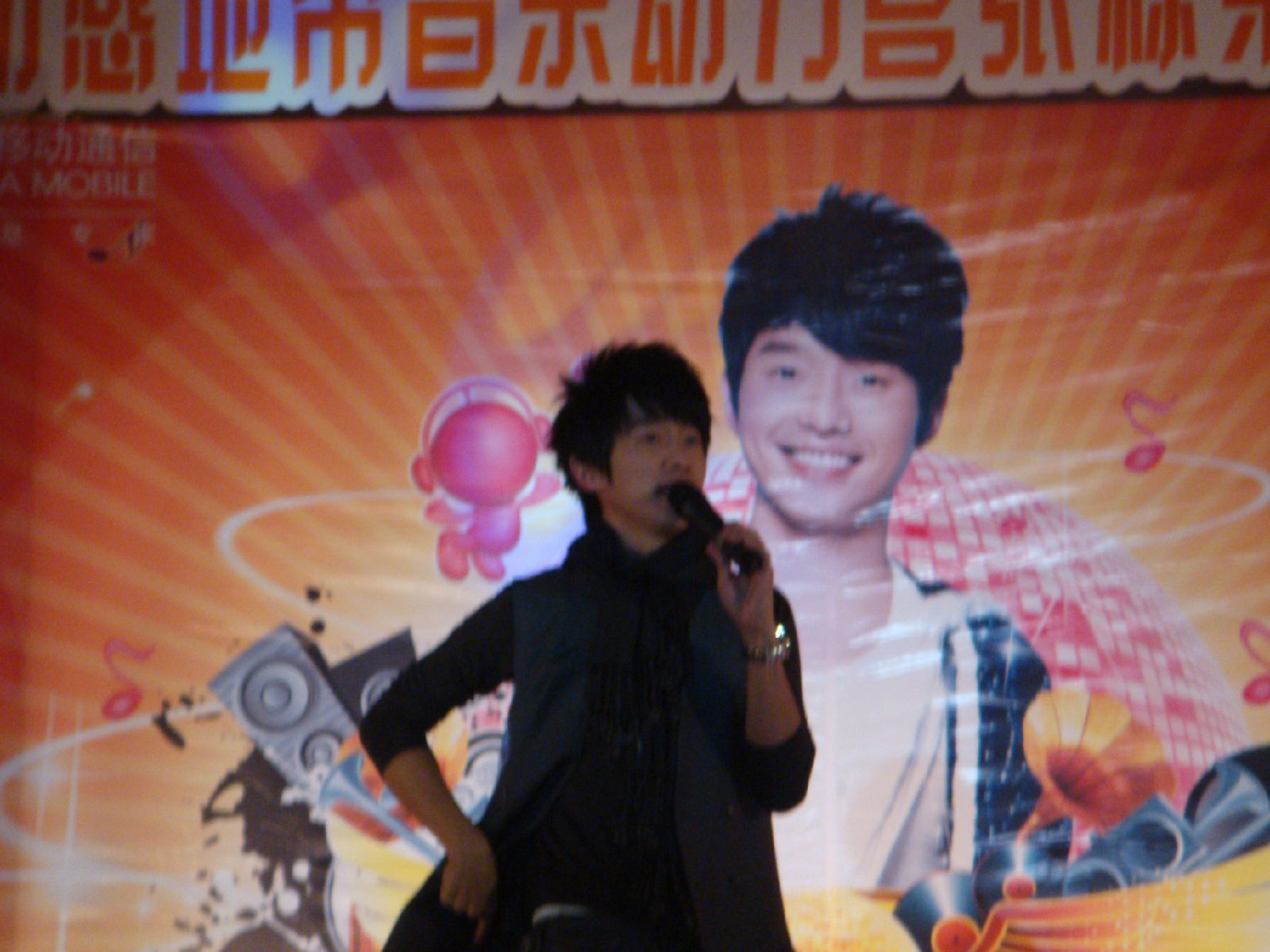 栋梁很有镜头感的说 因为他看到相机会对镜头 啊哈哈 所以看了我这里 我又抓到一张不抖得 哈哈 因为其实后面的歌有看过来好多次 不过我一激动都抖掉了 怨念啊 谁叫小姑娘我没有定力啊。。。