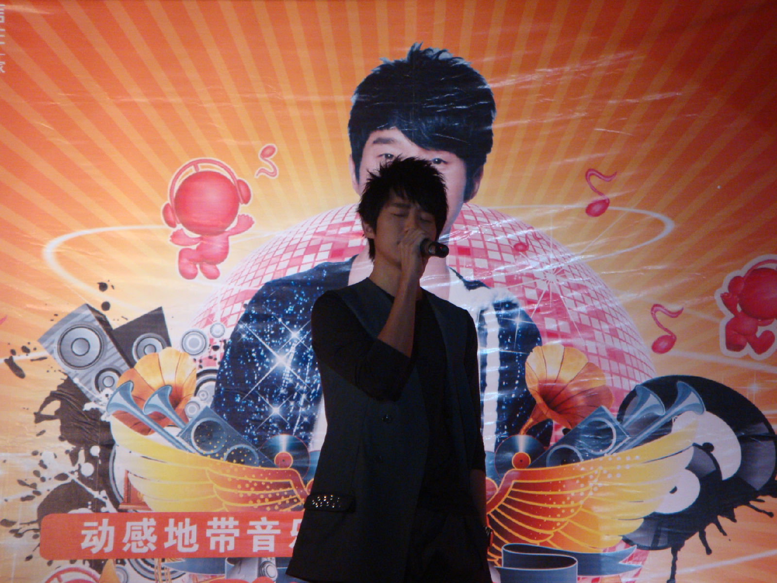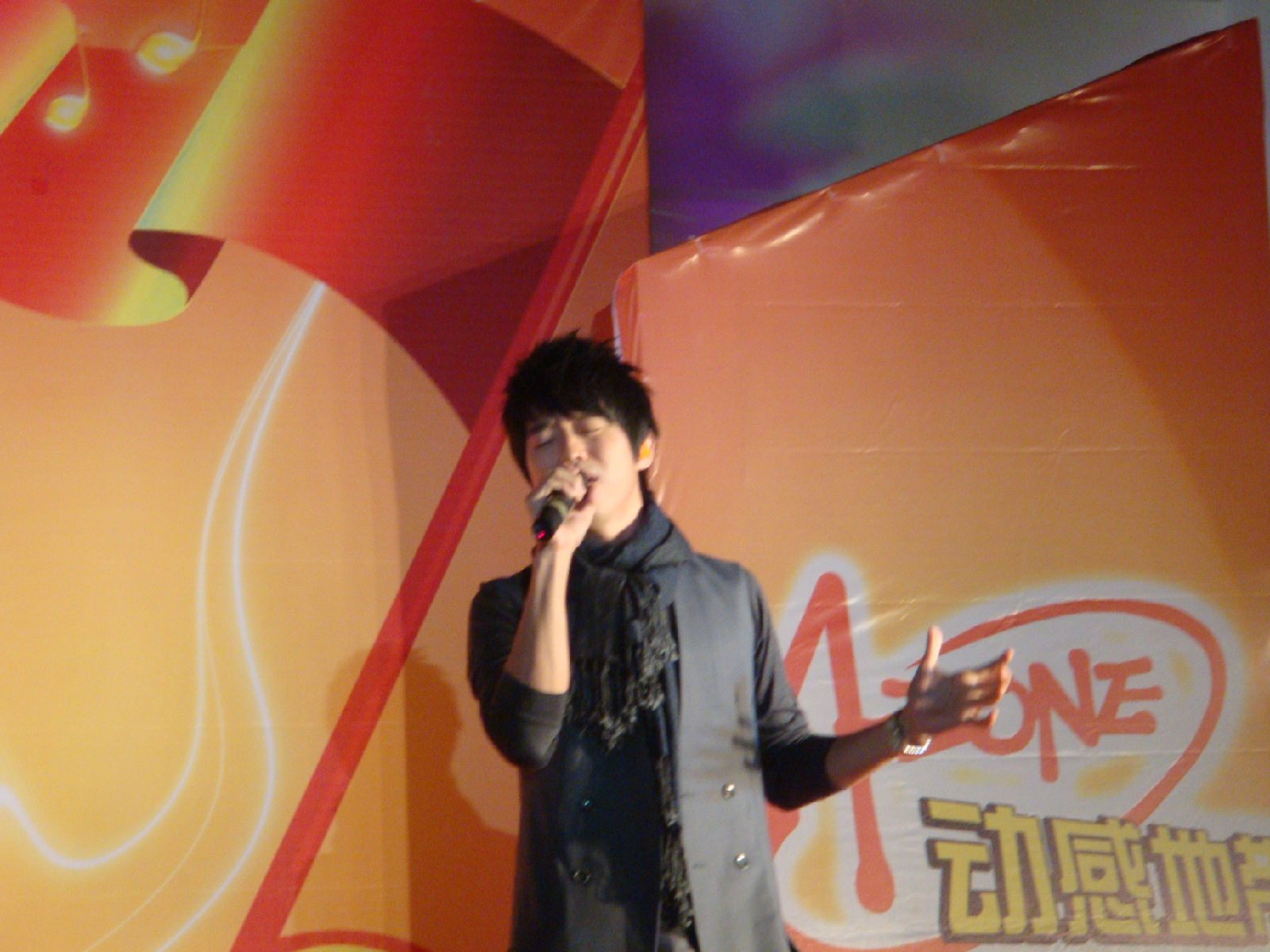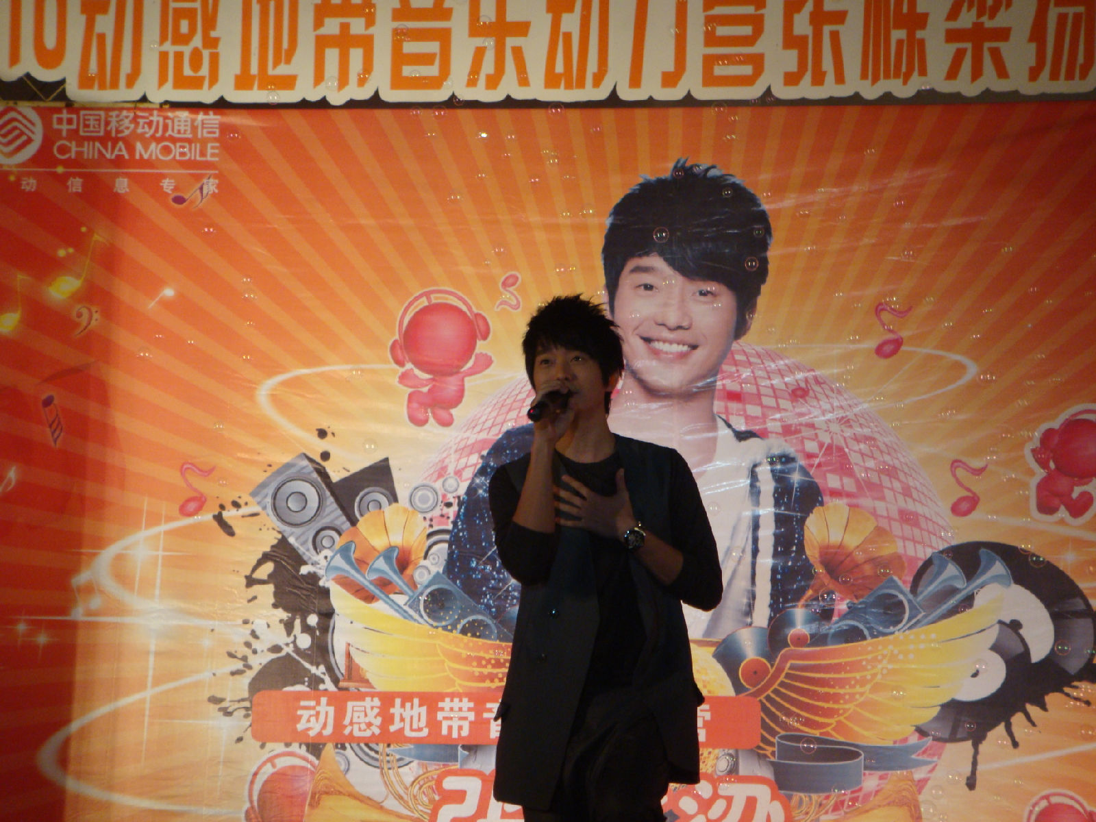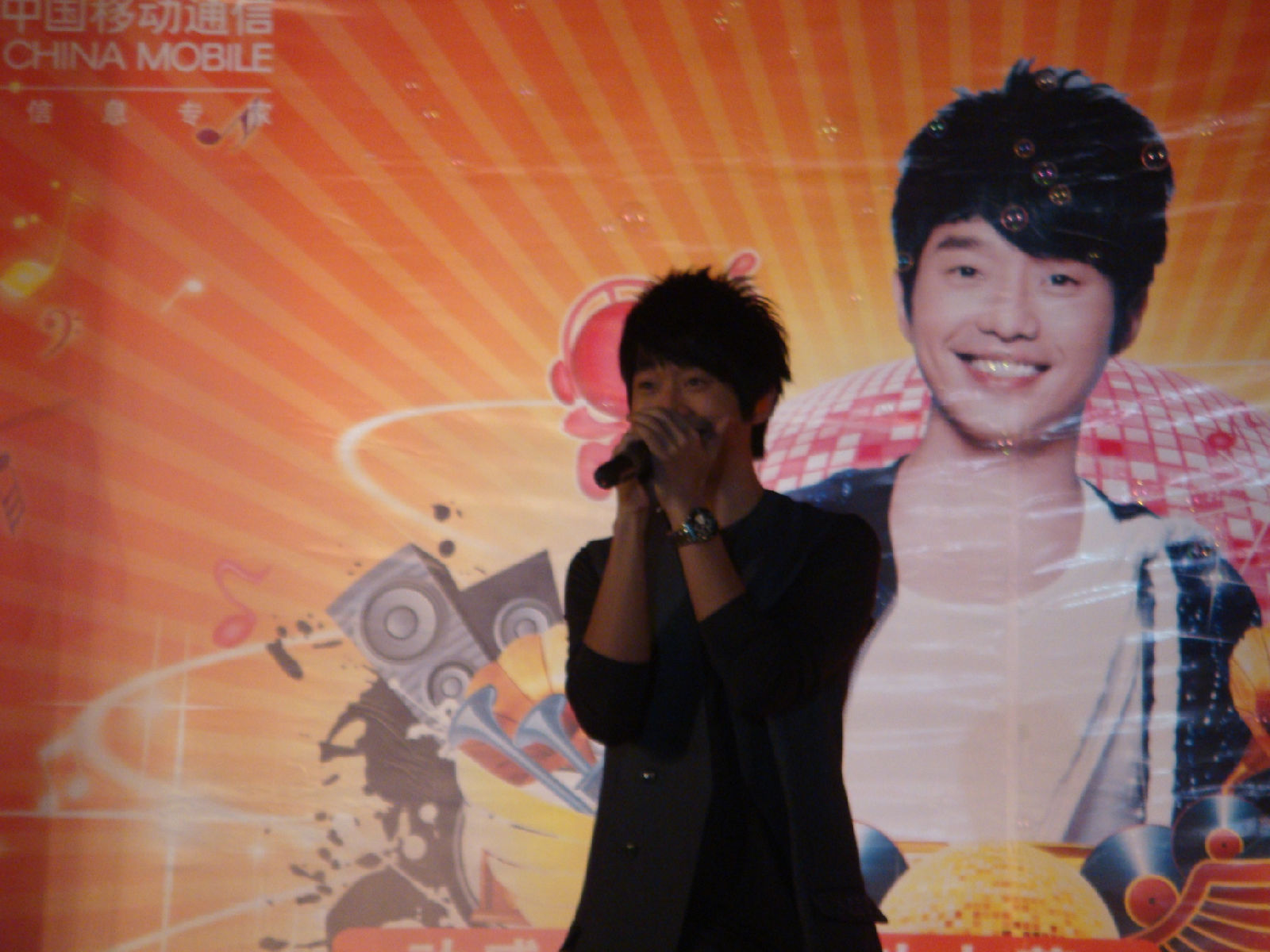 栋梁很有镜头感的说 因为他看到相机会对镜头 啊哈哈 所以看了我这里 我又抓到一张不抖得 哈哈 因为其实后面的歌有看过来好多次 不过我一激动都抖掉了 怨念啊 谁叫小姑娘我没有定力啊。。。