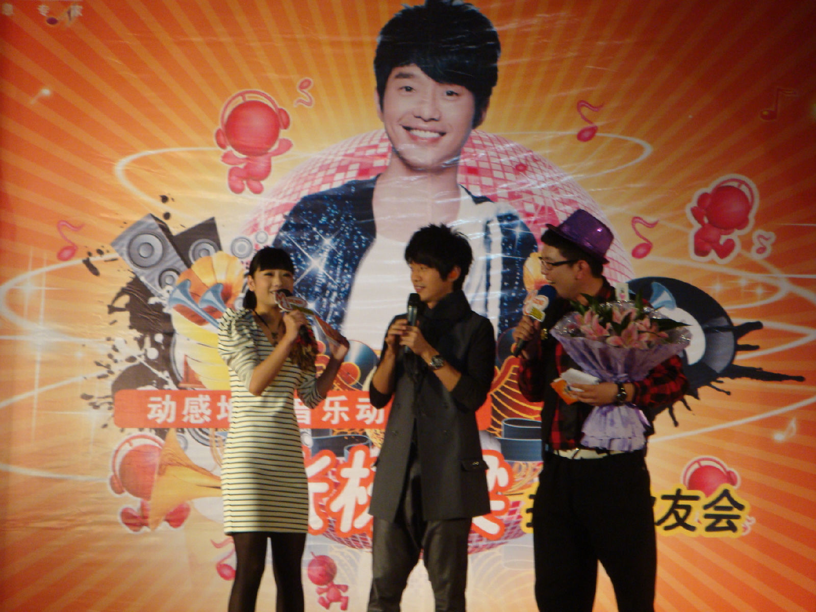 后来发生了一个小插曲 主持说漏嘴 说了18同学从安吉赶过来很辛苦。。。我们真是觉得非常的无奈 不过却在下面偷笑 就感觉像笑事情穿帮一样小小的偷笑 不过换来十八同学真诚地道歉 还问大家昨天有没有玩的开心。。。哎 没有您怎么开心。。。好啦那就唱歌给我们听 “说你也一样爱着我”