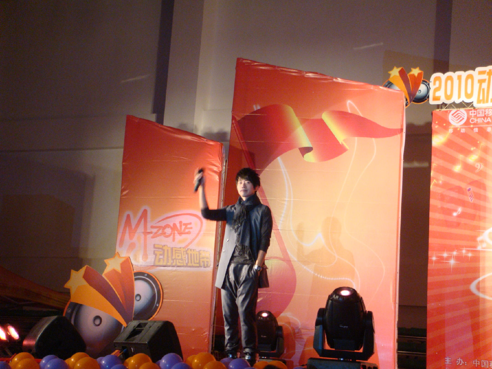 活动终于开始 但是先上了他们中学的3个节目 就是吊足了大家的胃口 我当时真的是好奇 18从哪冒出来 会穿啥衣服。。。终于再慢长的等待后,沉默的瞬间的歌曲前奏想起,可是我们的王子还没有出来 终于 过了小一会后 他从哪个舞台左侧上来 幸好沉默的前奏有比较长 真是吊足胃口